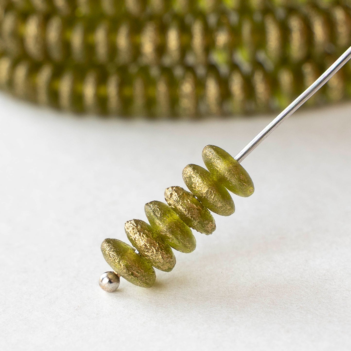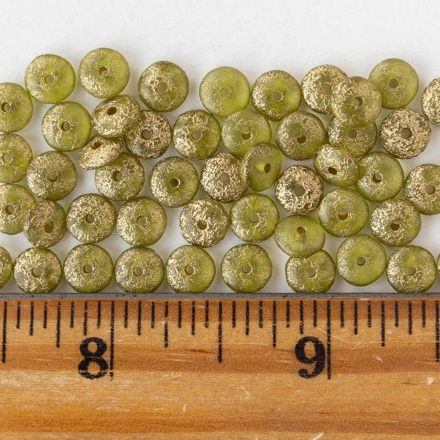 6mm Glass Rondelle Beads - Etched Peridot Gold - 25 or 50 beads