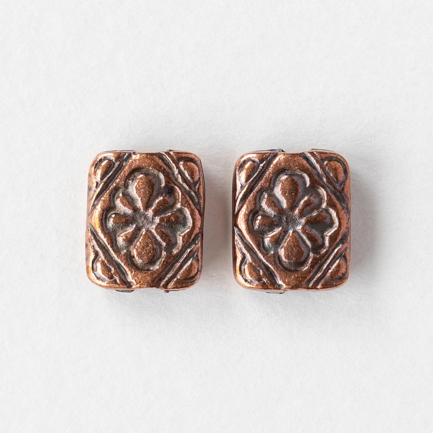 9.5x11mm Metal Floral Rectangle Beads - Antique Copper - 2, 6, or 12 beads