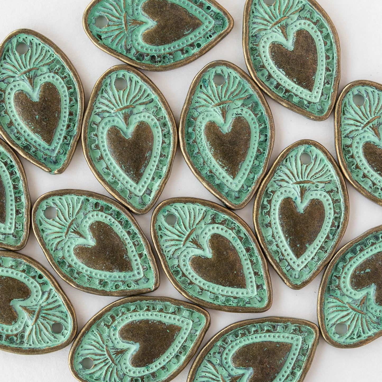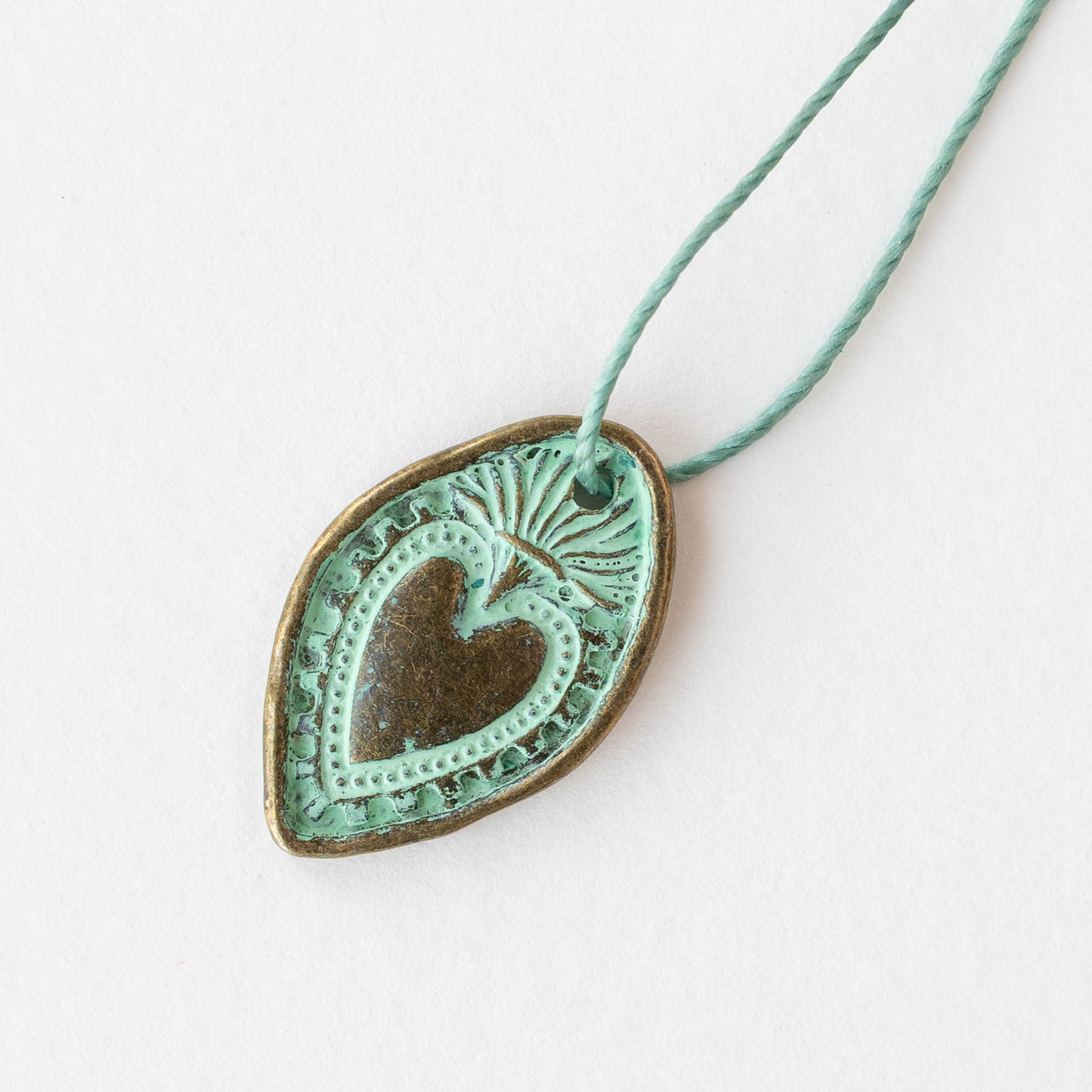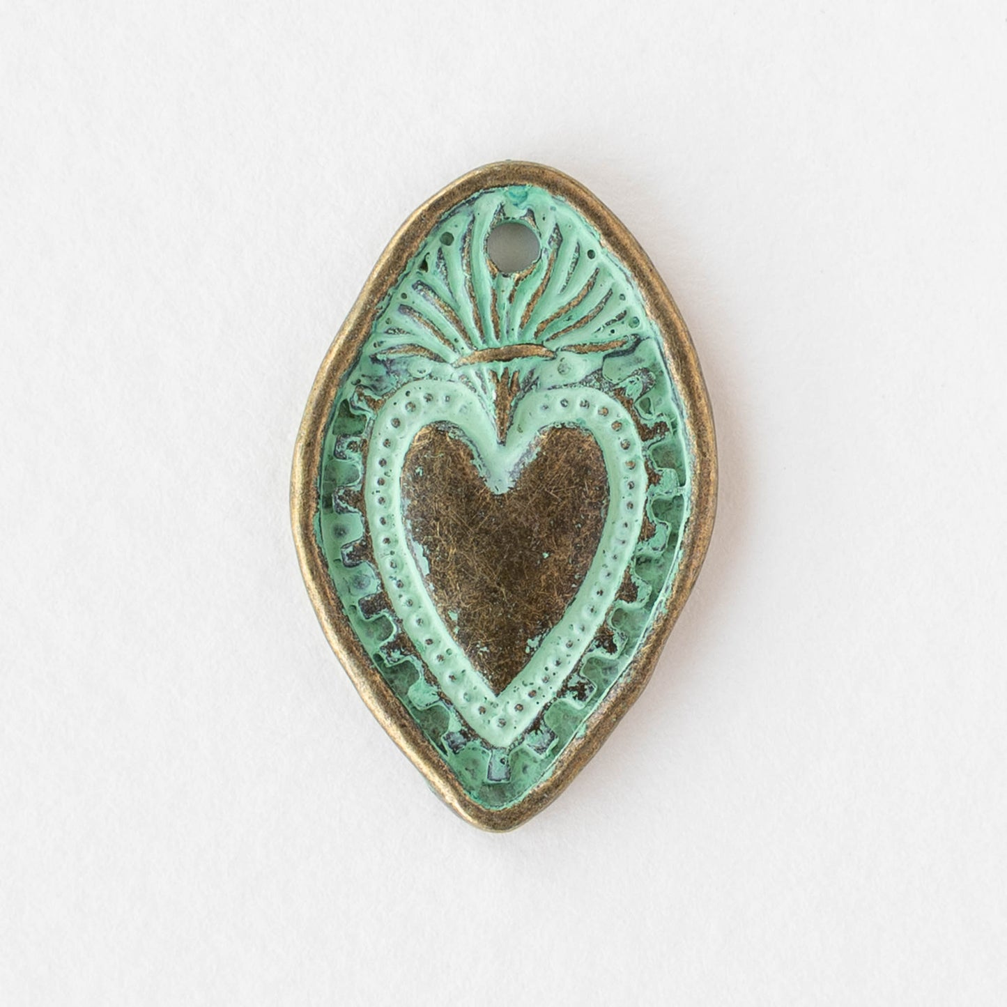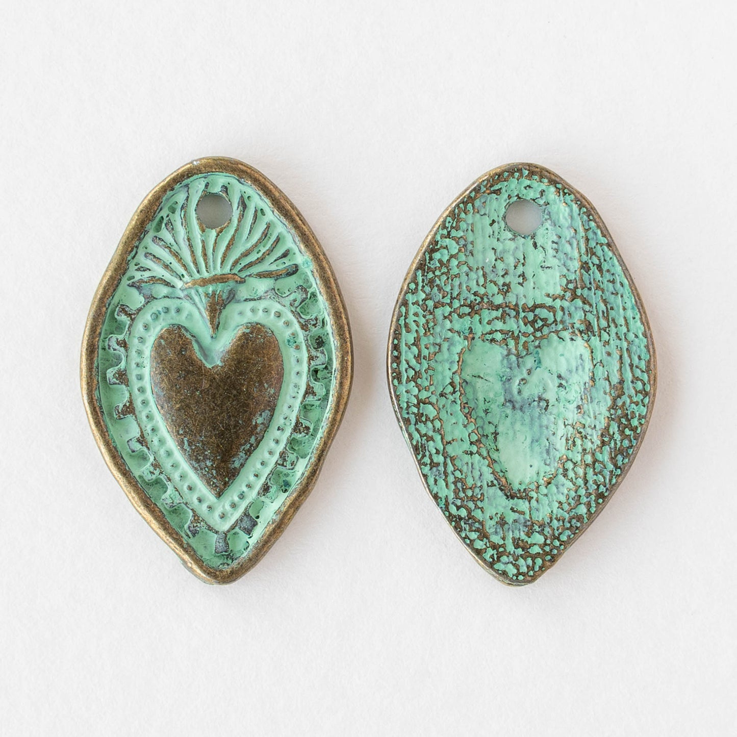 18x28mm Oval Heart Pendant - Green Patina Brass - 2 or 6 pendants