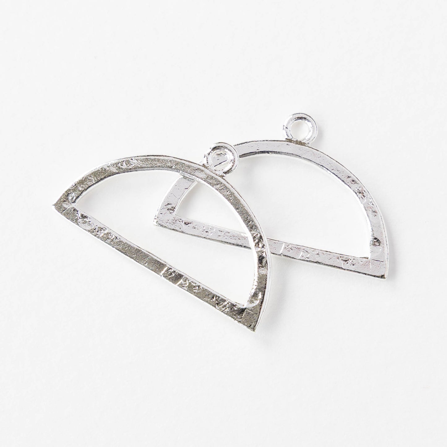 30mm Hammered Flat Half Circle Pendant - Silver Plated - 1, 2 or 6 pieces