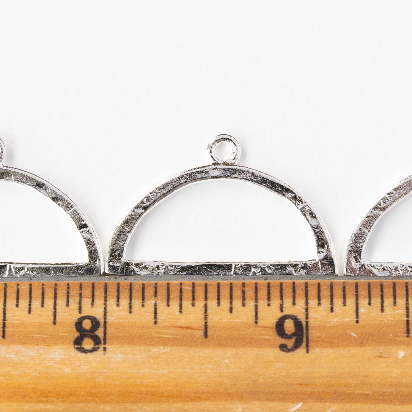 This pendant showcases a half-circle shape, adding a unique geometric flair to your designs. Endless possibilities for your creative endeavors, from wire wrapping to resin work, and beyond. A great stitch-around for beading and wire wrapping!