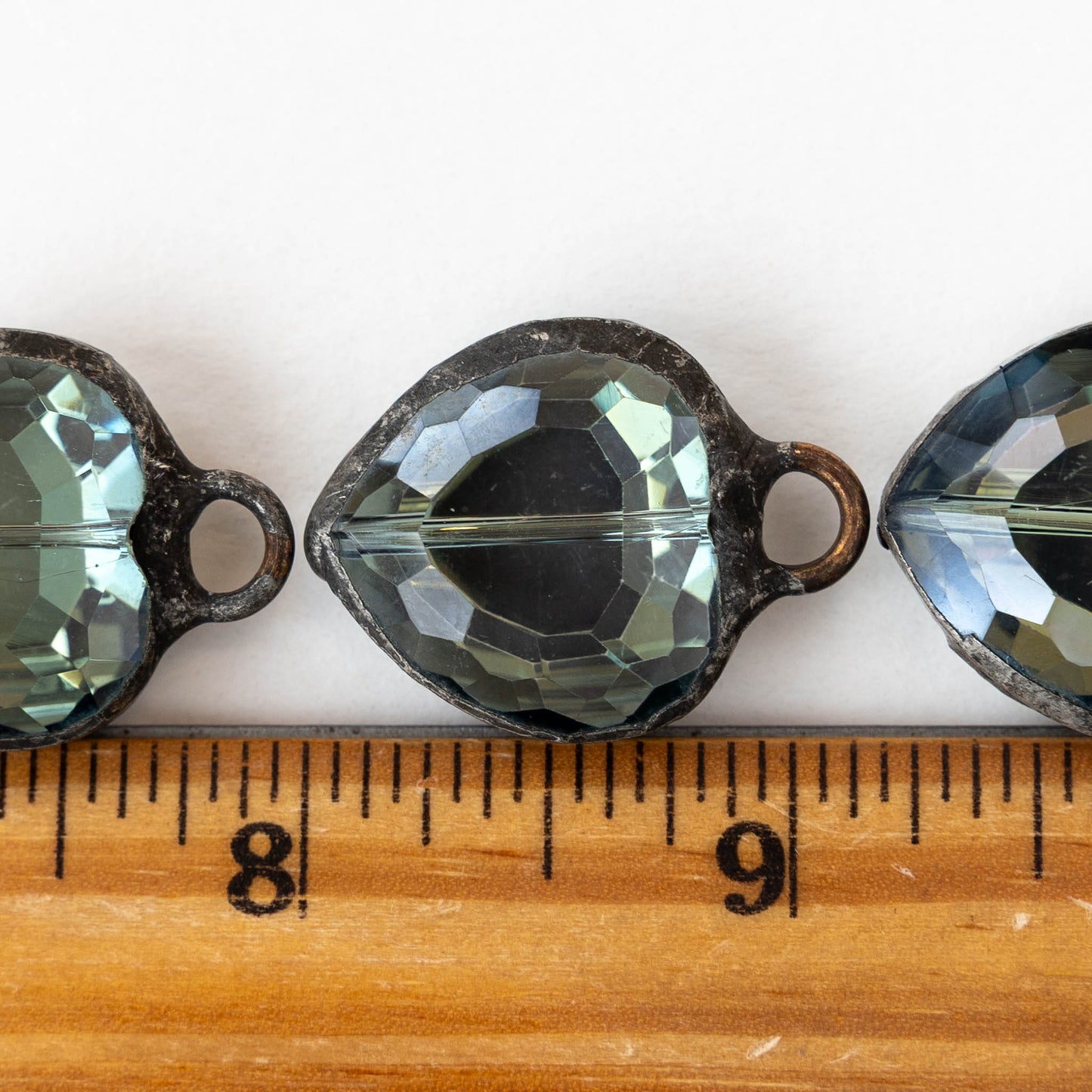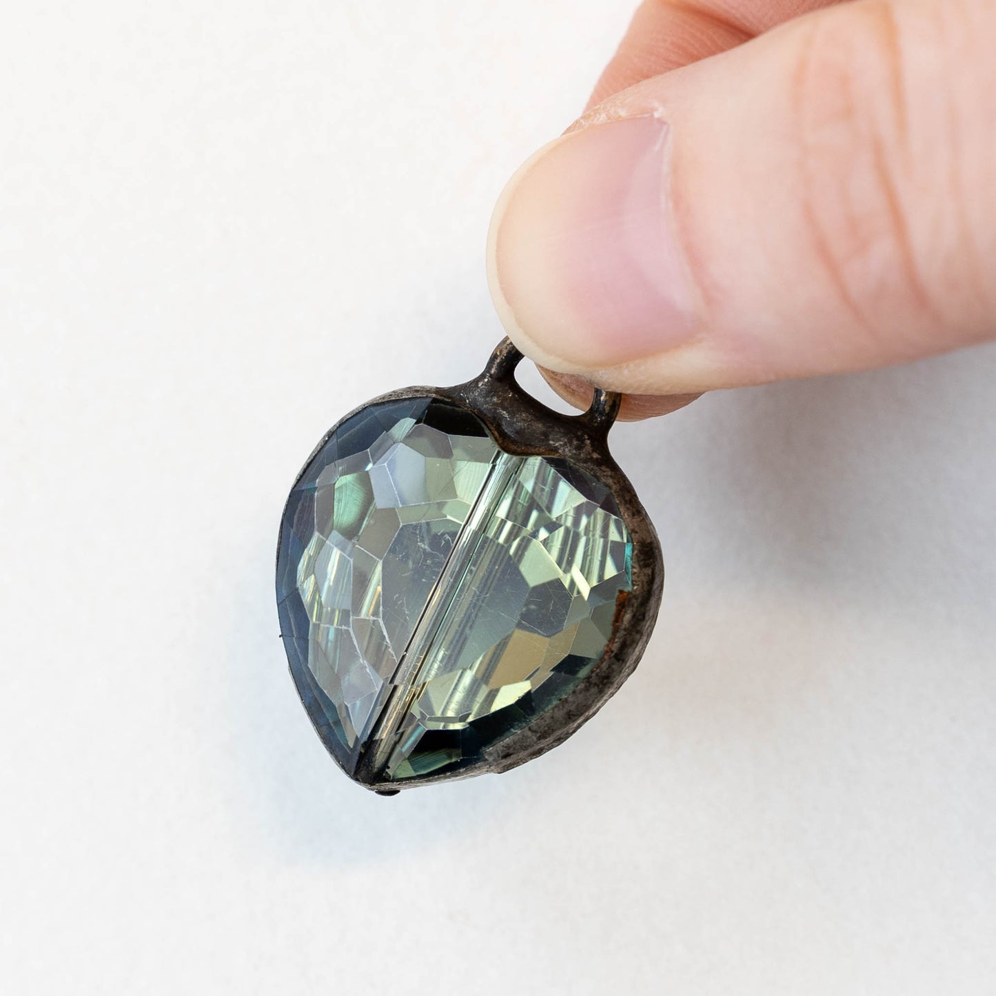 Soldered Faceted Crystal Heart Pendant - Blue Green Gray - 22mm - 1 piece