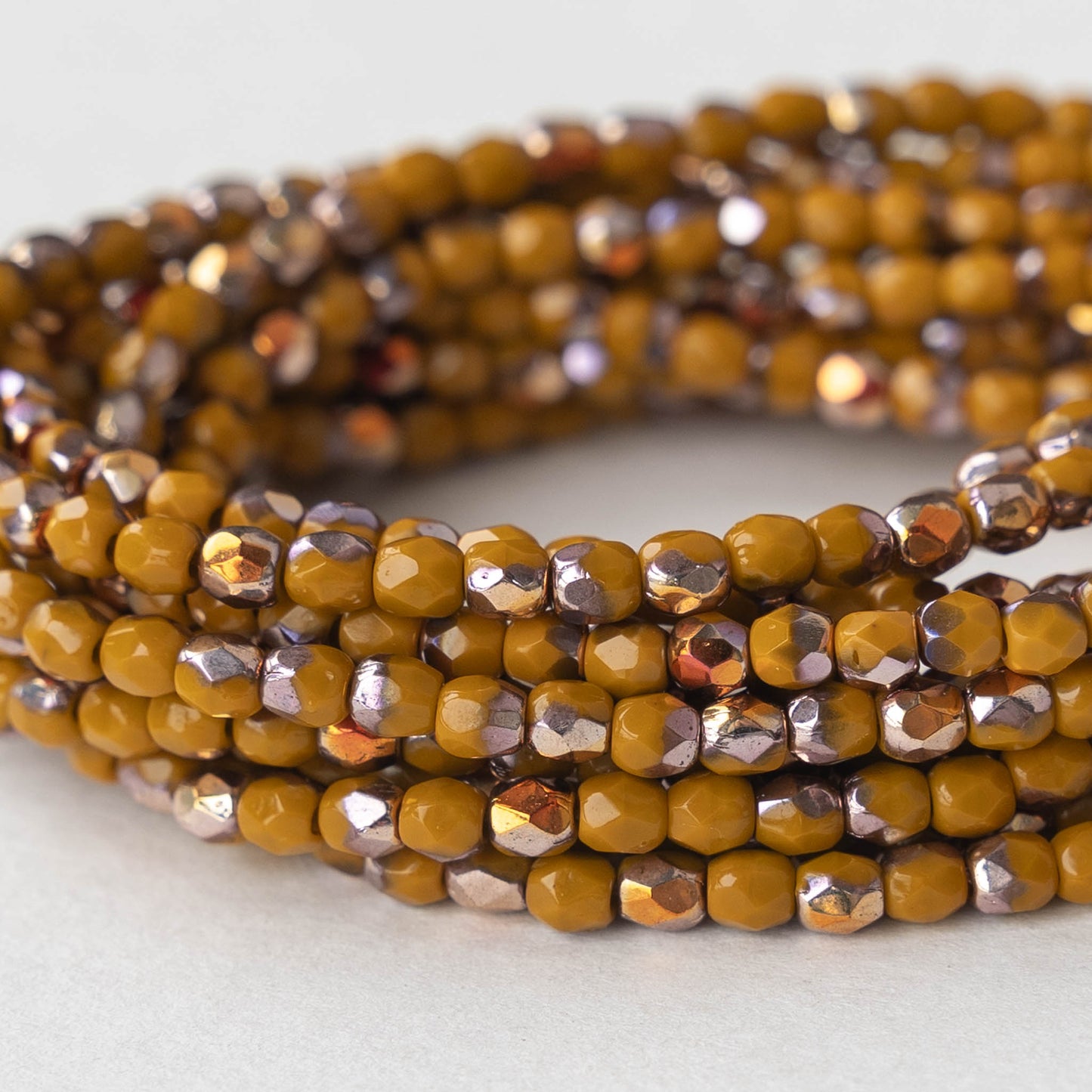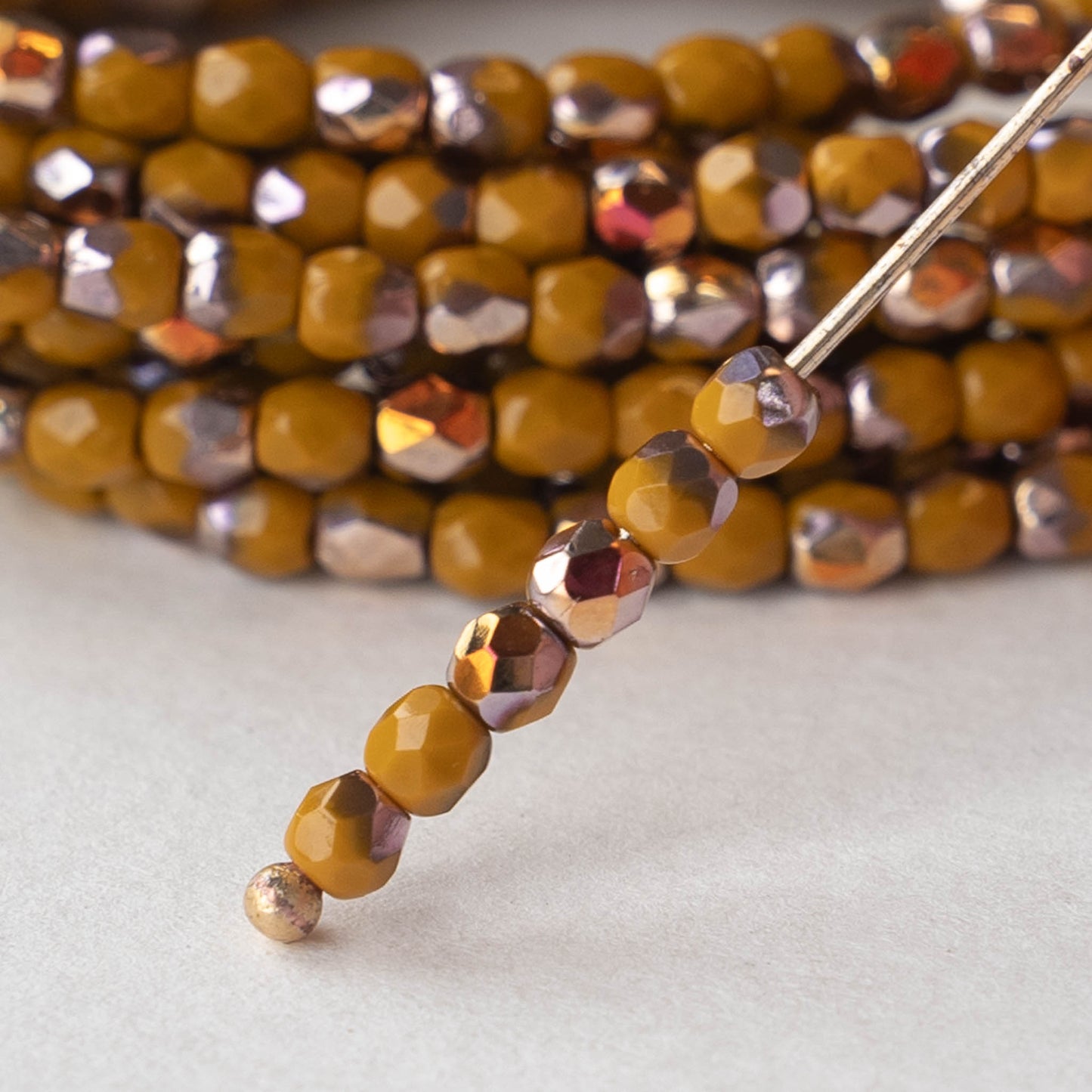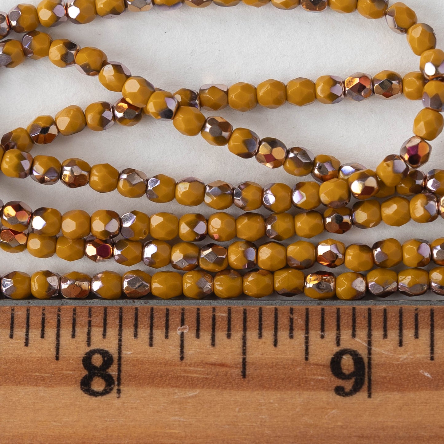 3mm,4mm Round Firepolished Beads - Opaque Golden Amber with Marea Half Coat - 50 Beads