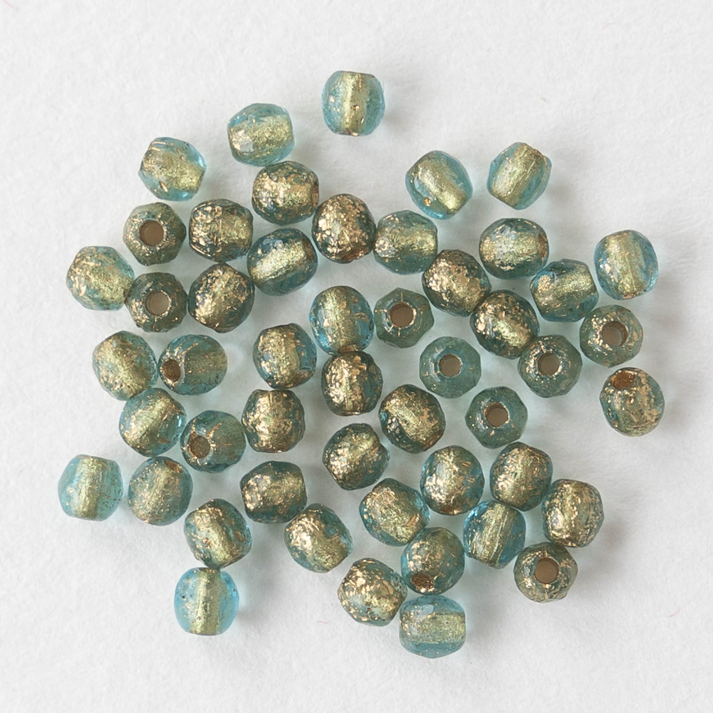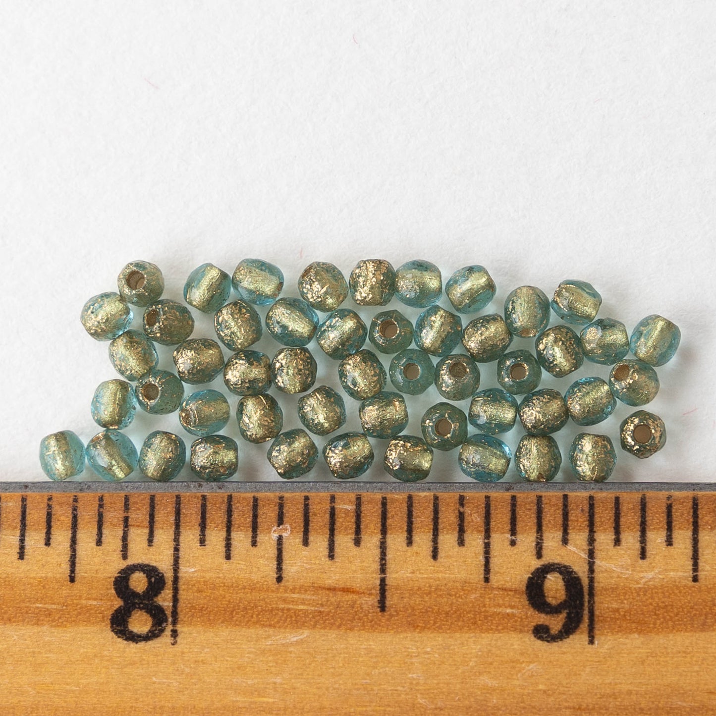 3mm Round Beads - Etched Seafoam Gold - 50 beads