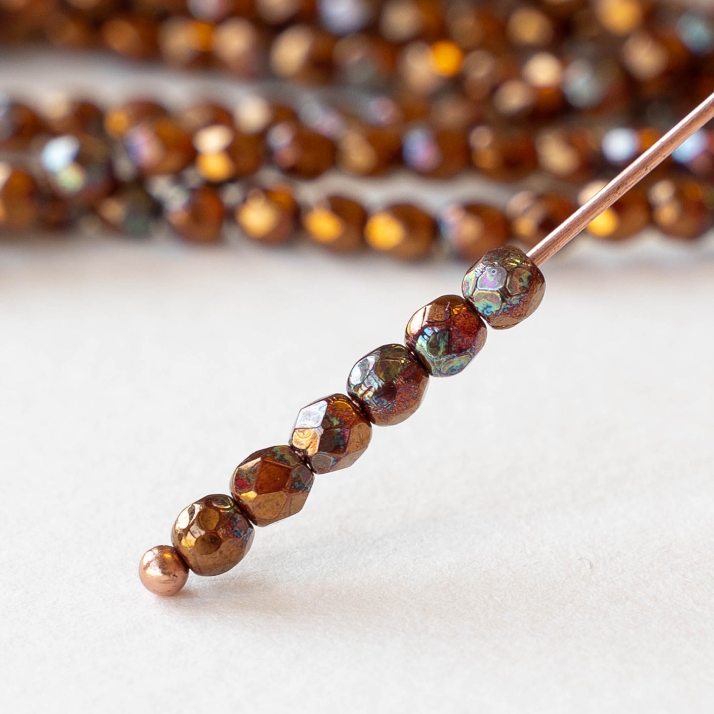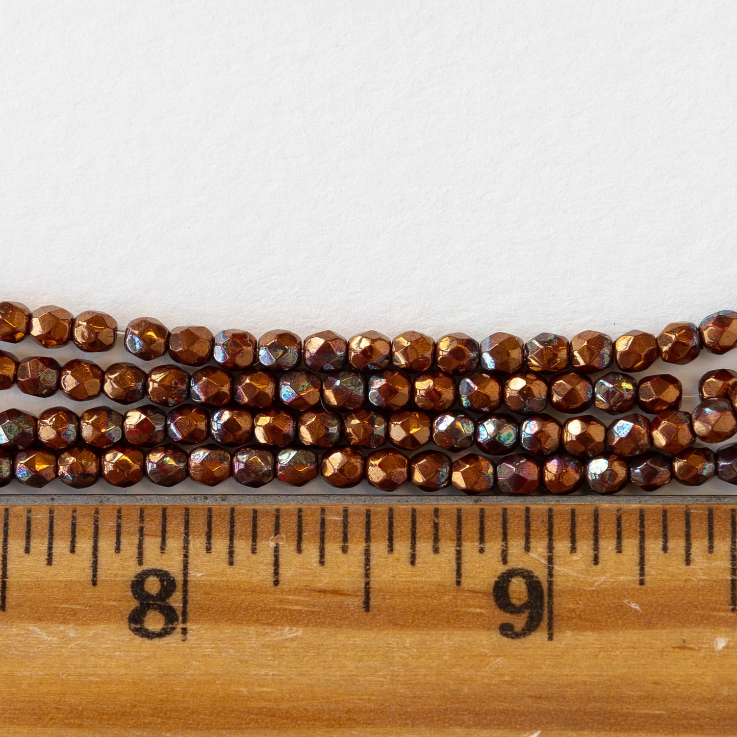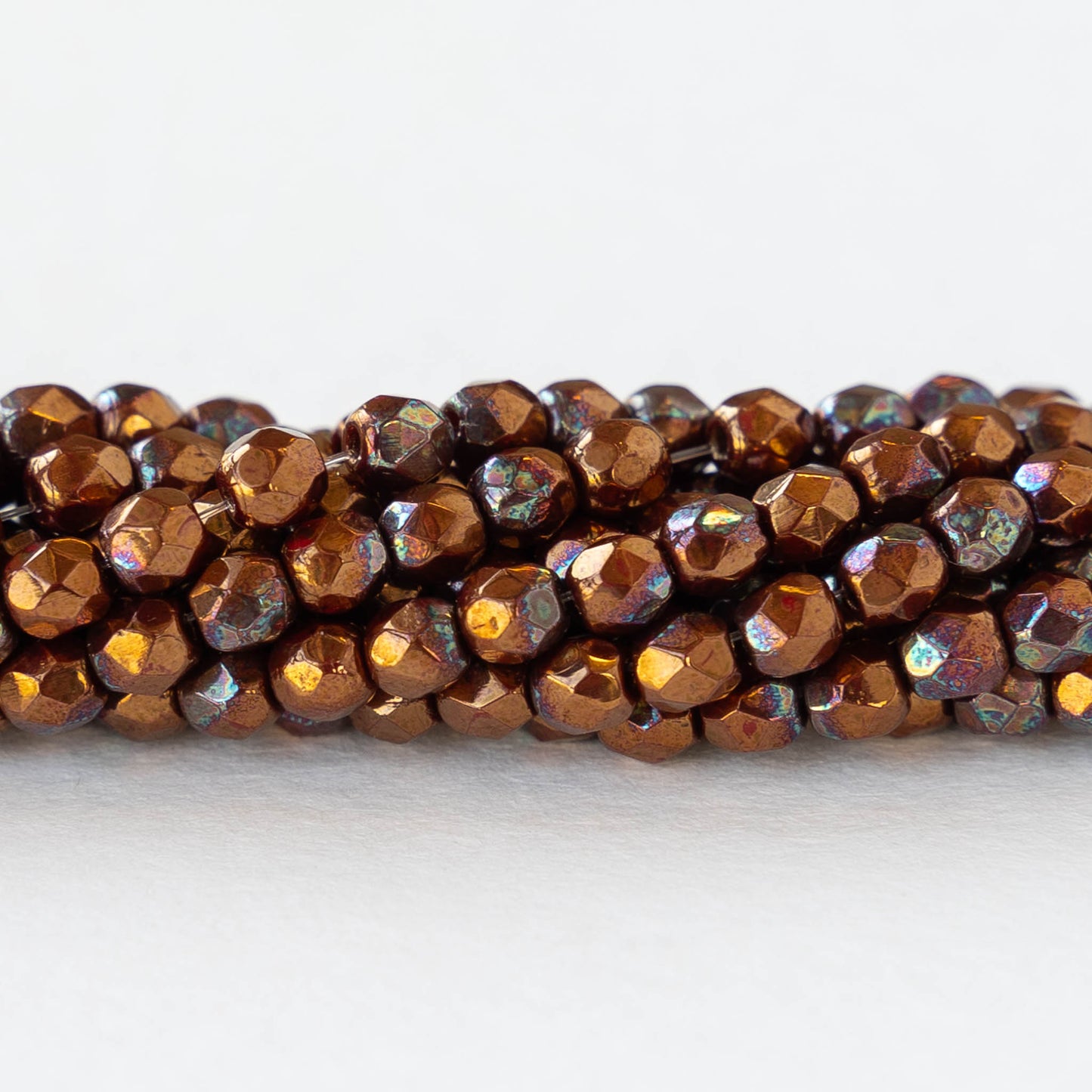 3mm Round Faceted Glass Beads - Bronze Luster Iris- 50 Beads