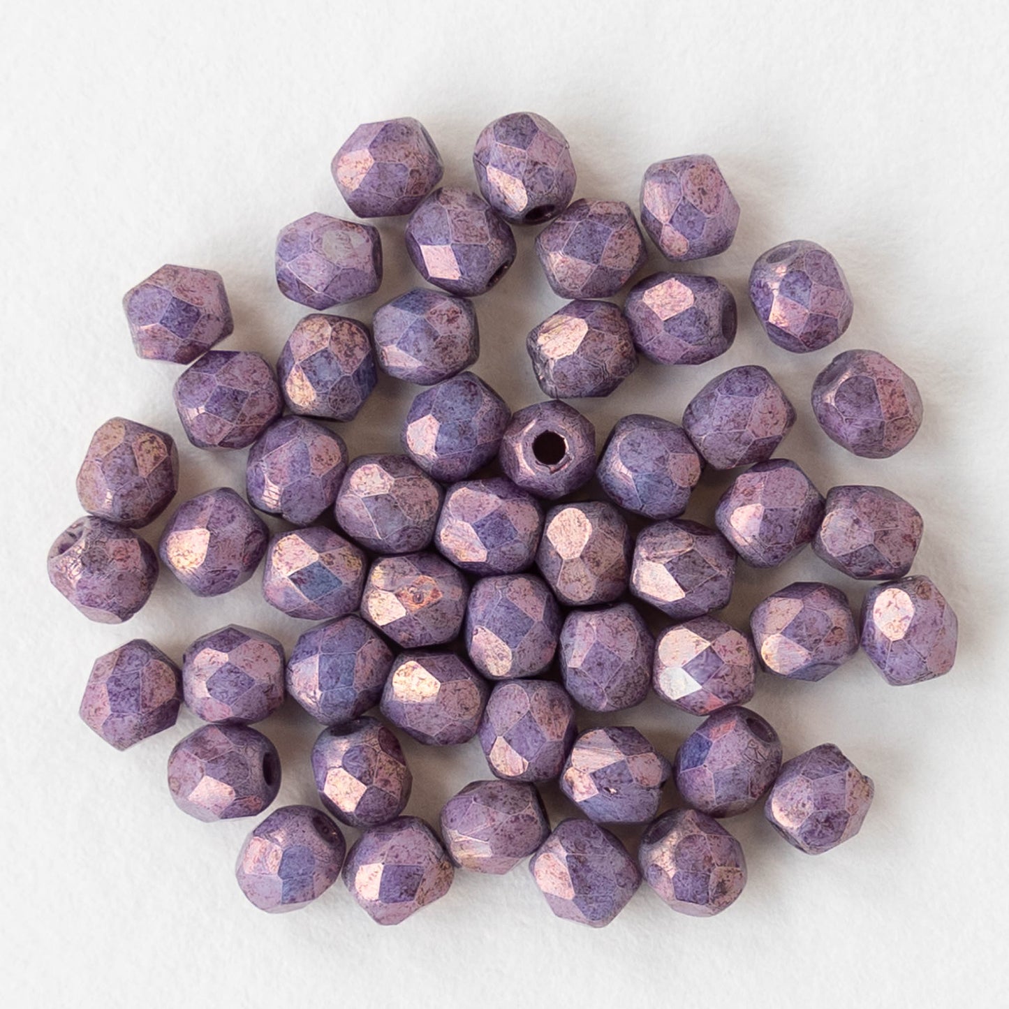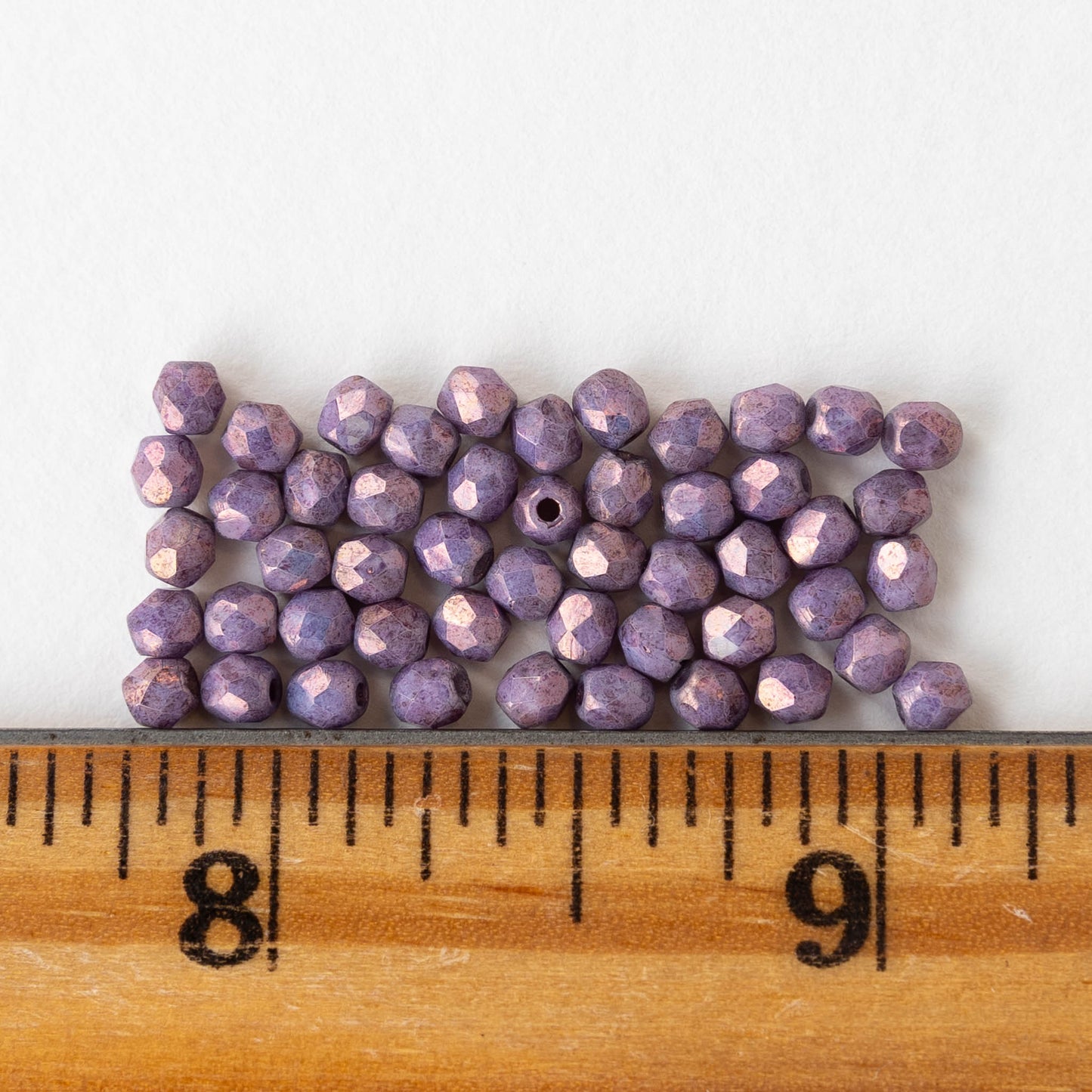 3mm Round Faceted Glass Beads - Opaque Purple Luster with Bronze - 50 Beads