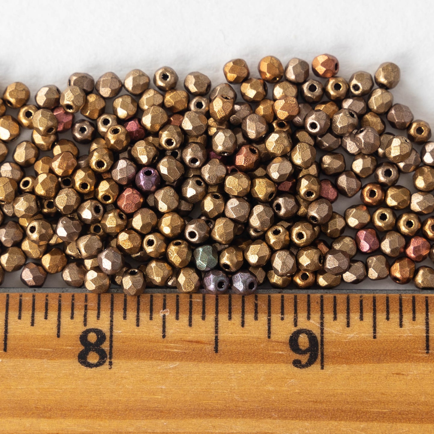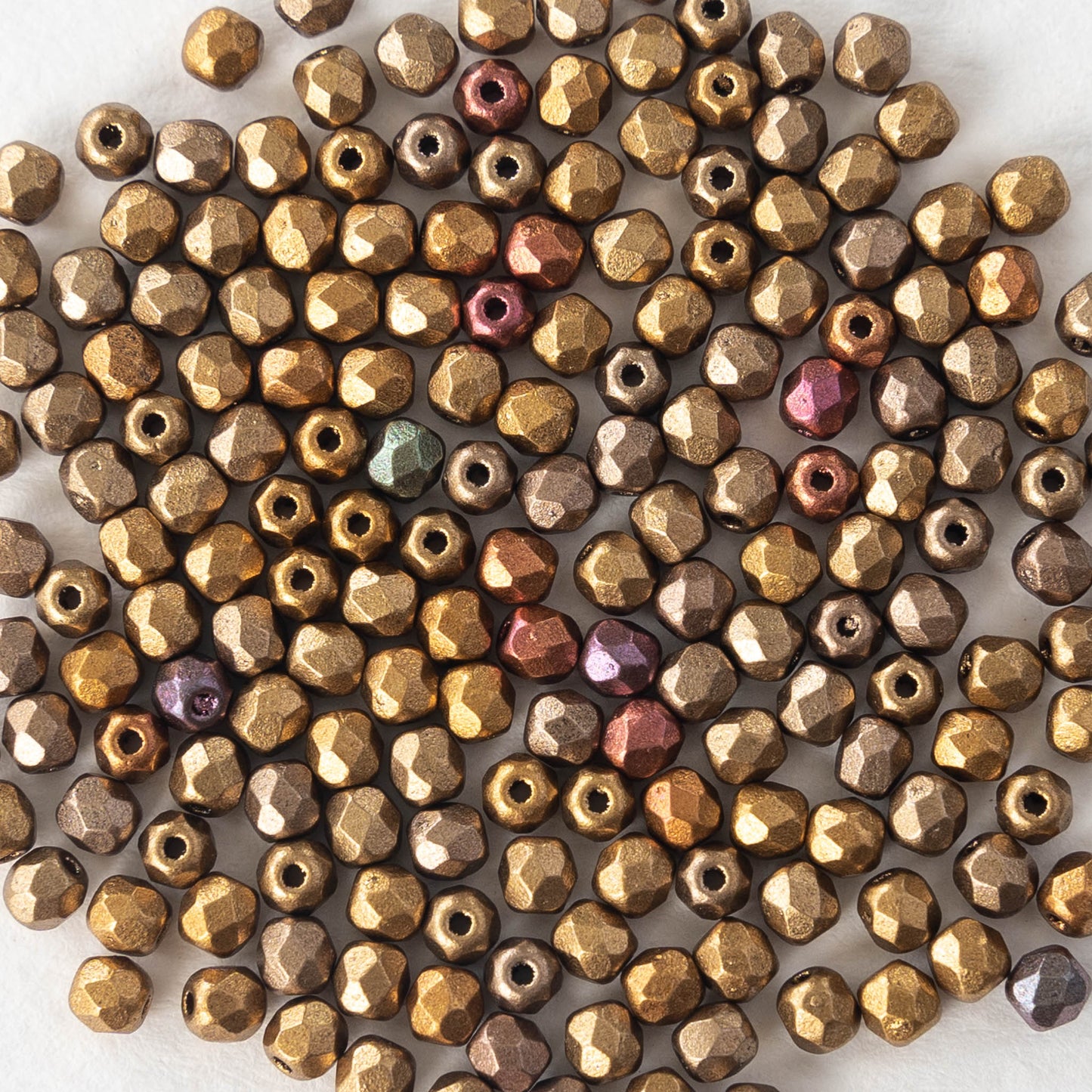 3mm Round Firepolished Beads - Antique Gold Matte Iris - 5 Grams