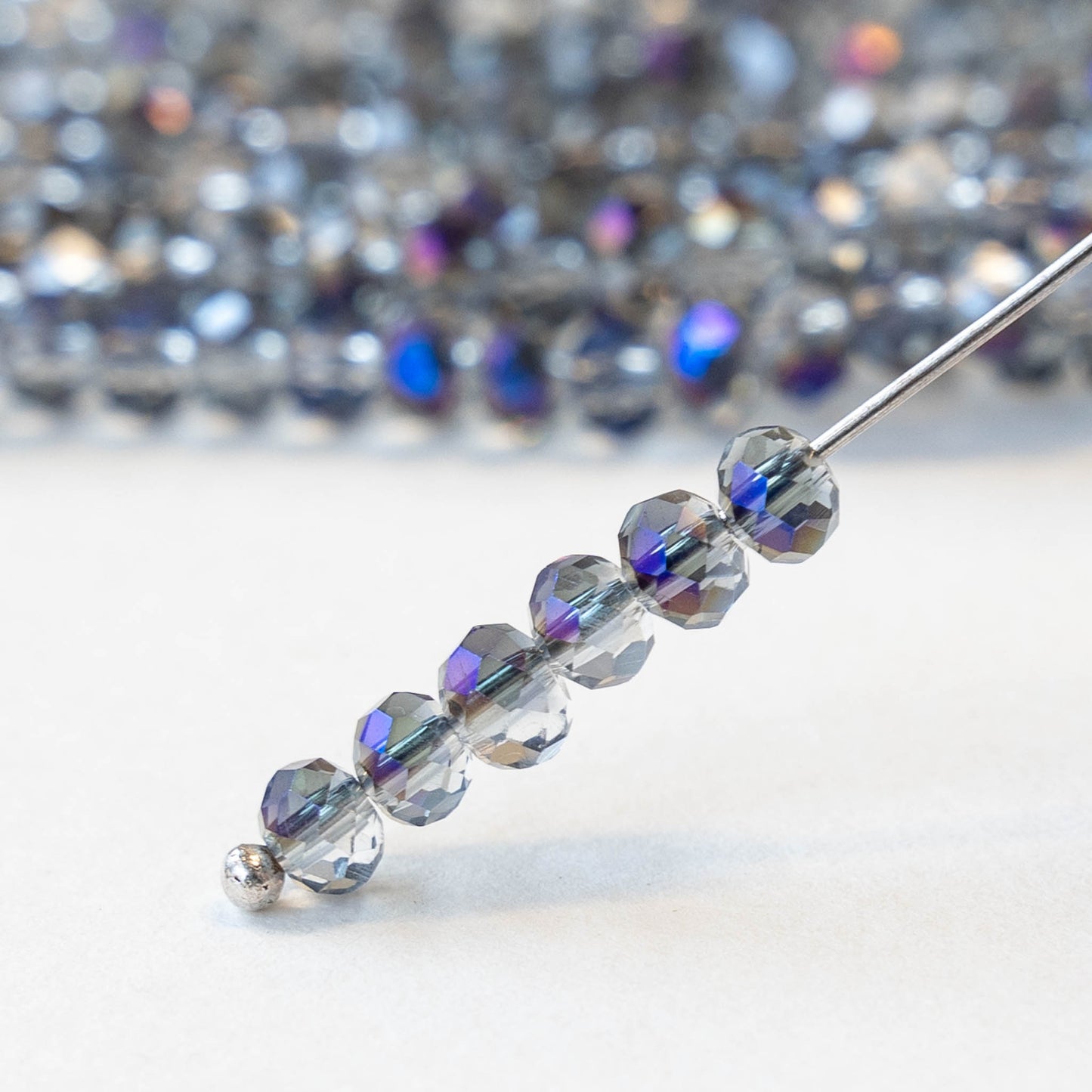 These faceted glass beads catch the light beautifully, creating a sparkly effect.