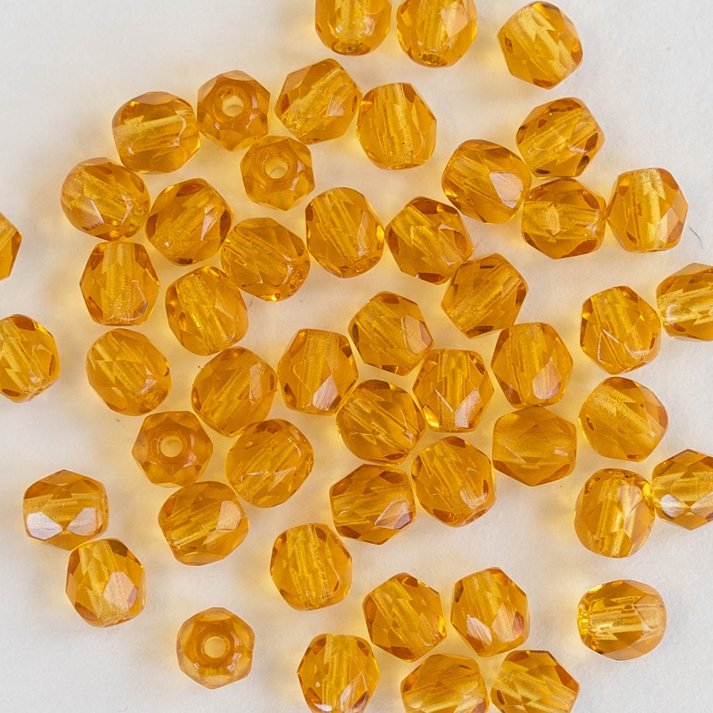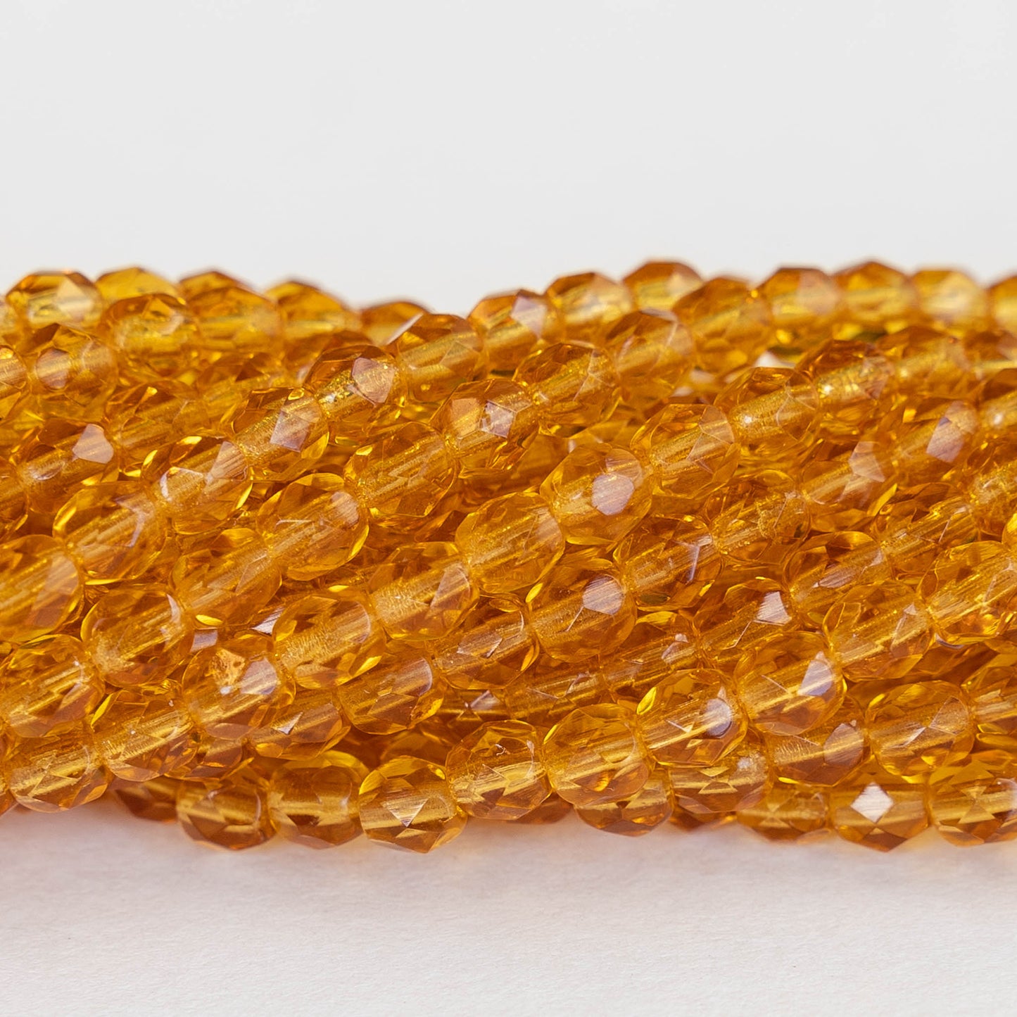 4mm Round Firepolished Beads - Topaz - 120 Beads