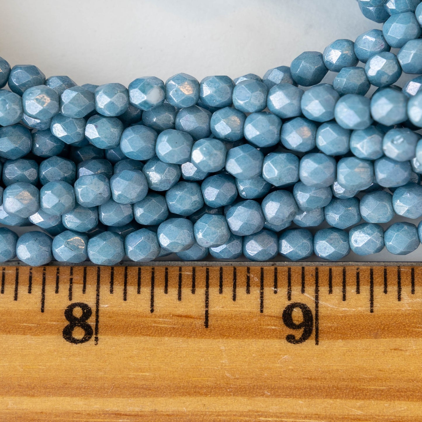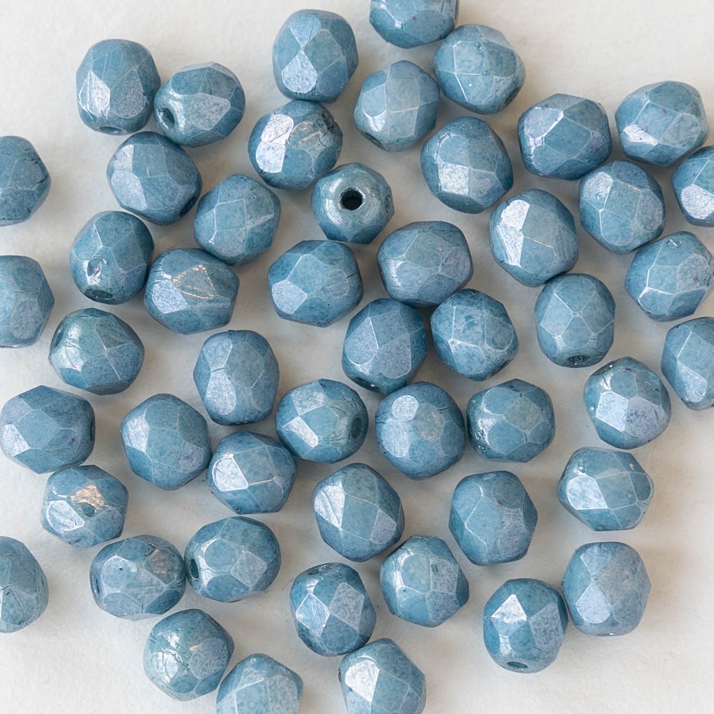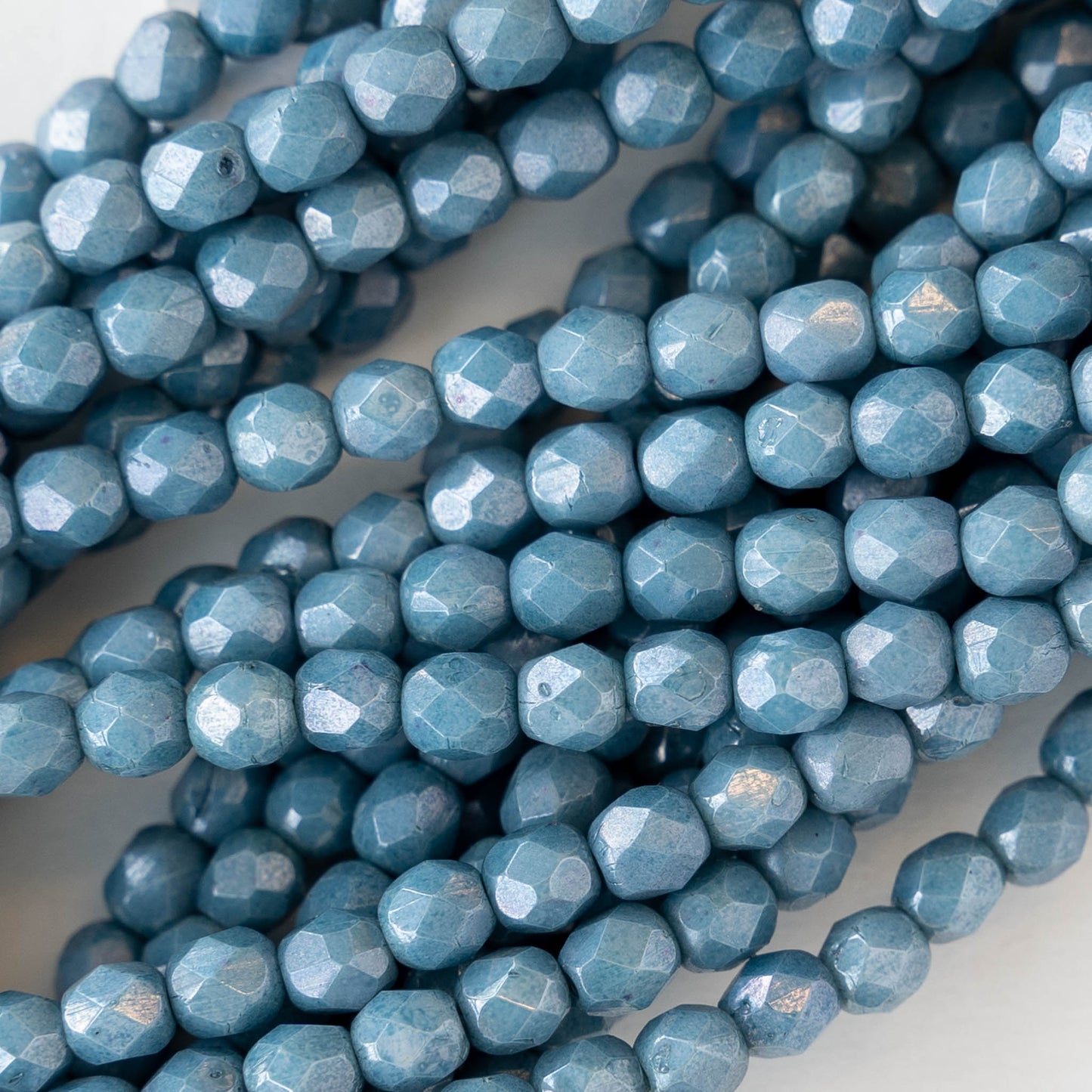 4mm Round Firepolished Beads - Slate Blue Luster - 50 Beads