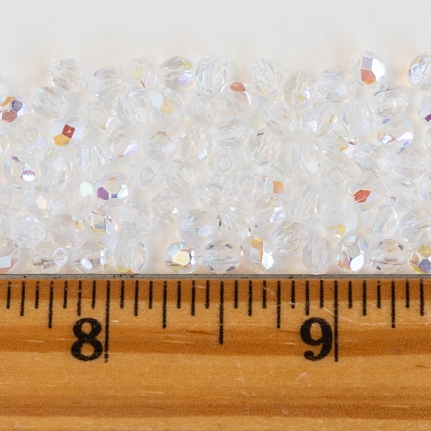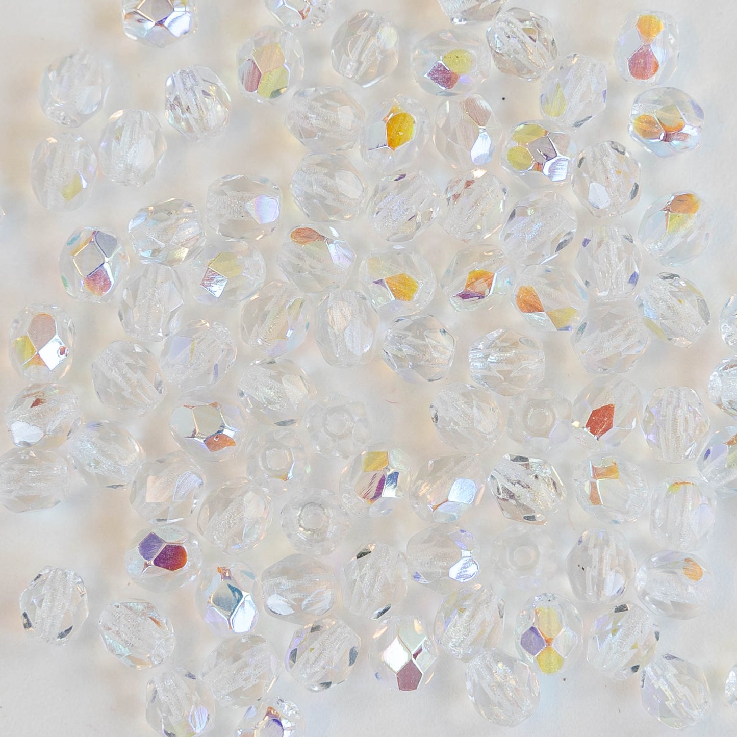 4mm Round Firepolished Beads - Crystal AB - 50 Beads