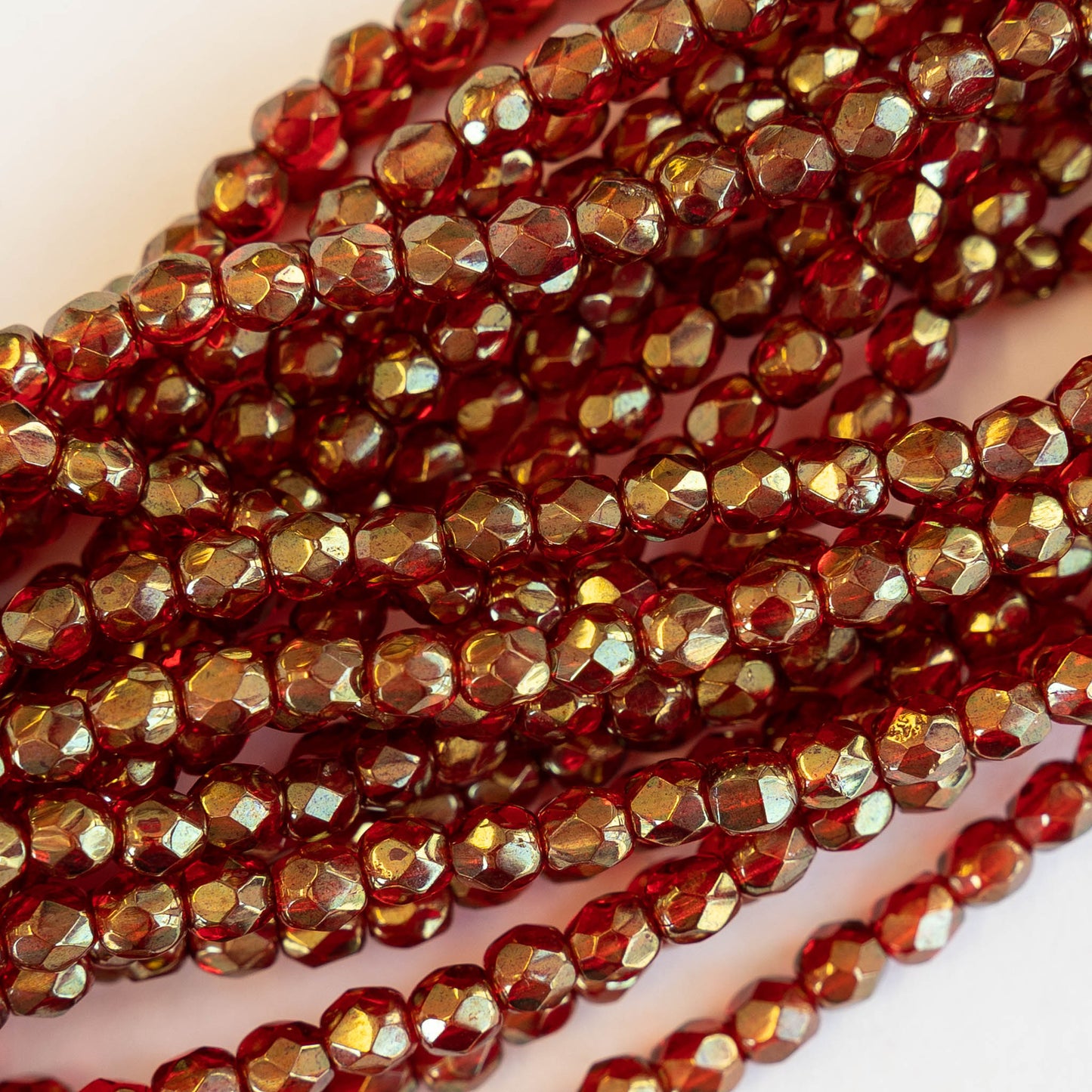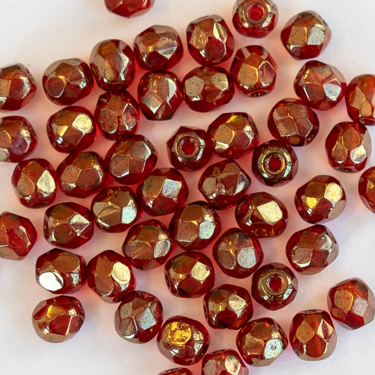 4mm Round Firepolished Beads - Red Gold Luster - 50 Beads