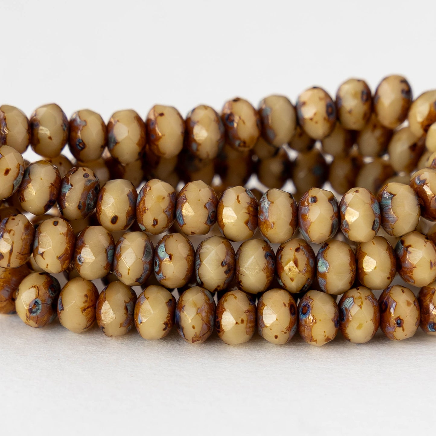 4x5mm Faceted Glass Rondelles - Opaque Tan Picasso - 30 Beads