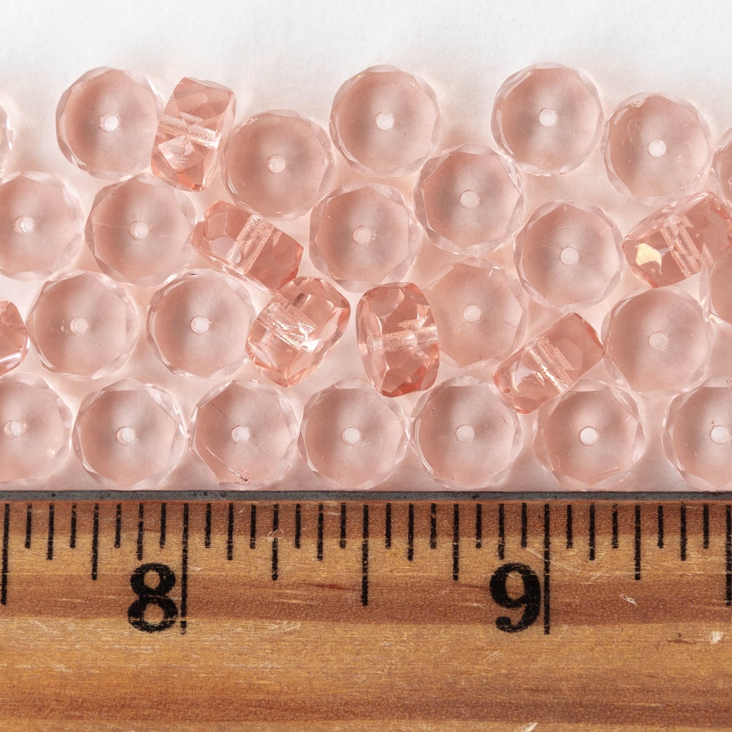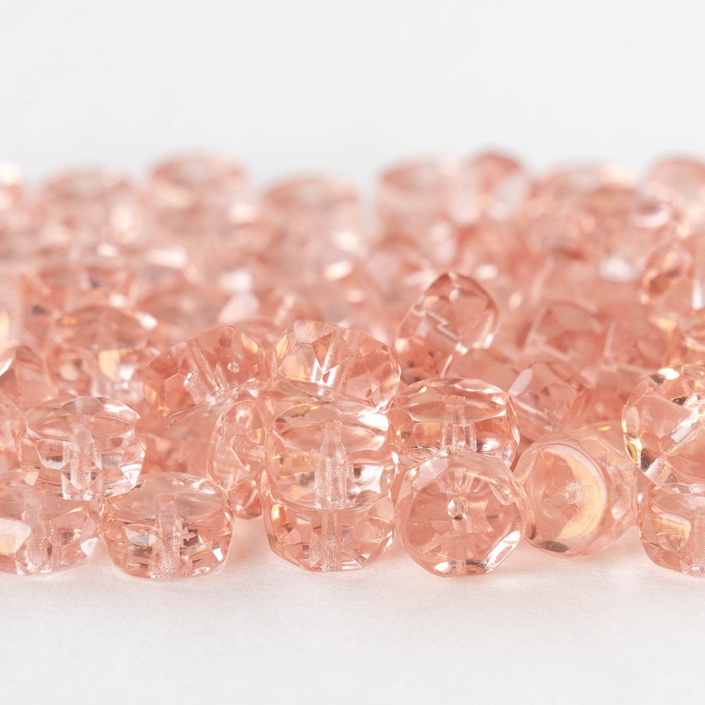 4x8mm Firepolished Glass Heishi Beads - Transparent Pink Rosaline - 50 Beads