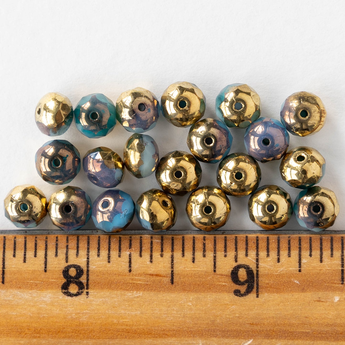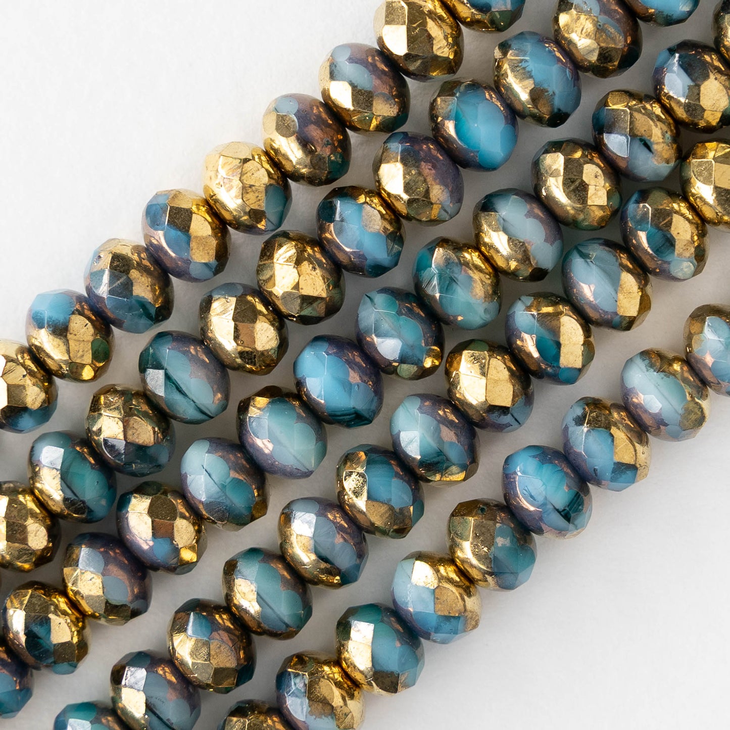 5x7mm Faceted Rondelle Beads - Opaque Blue Gold Mix- 26 beads