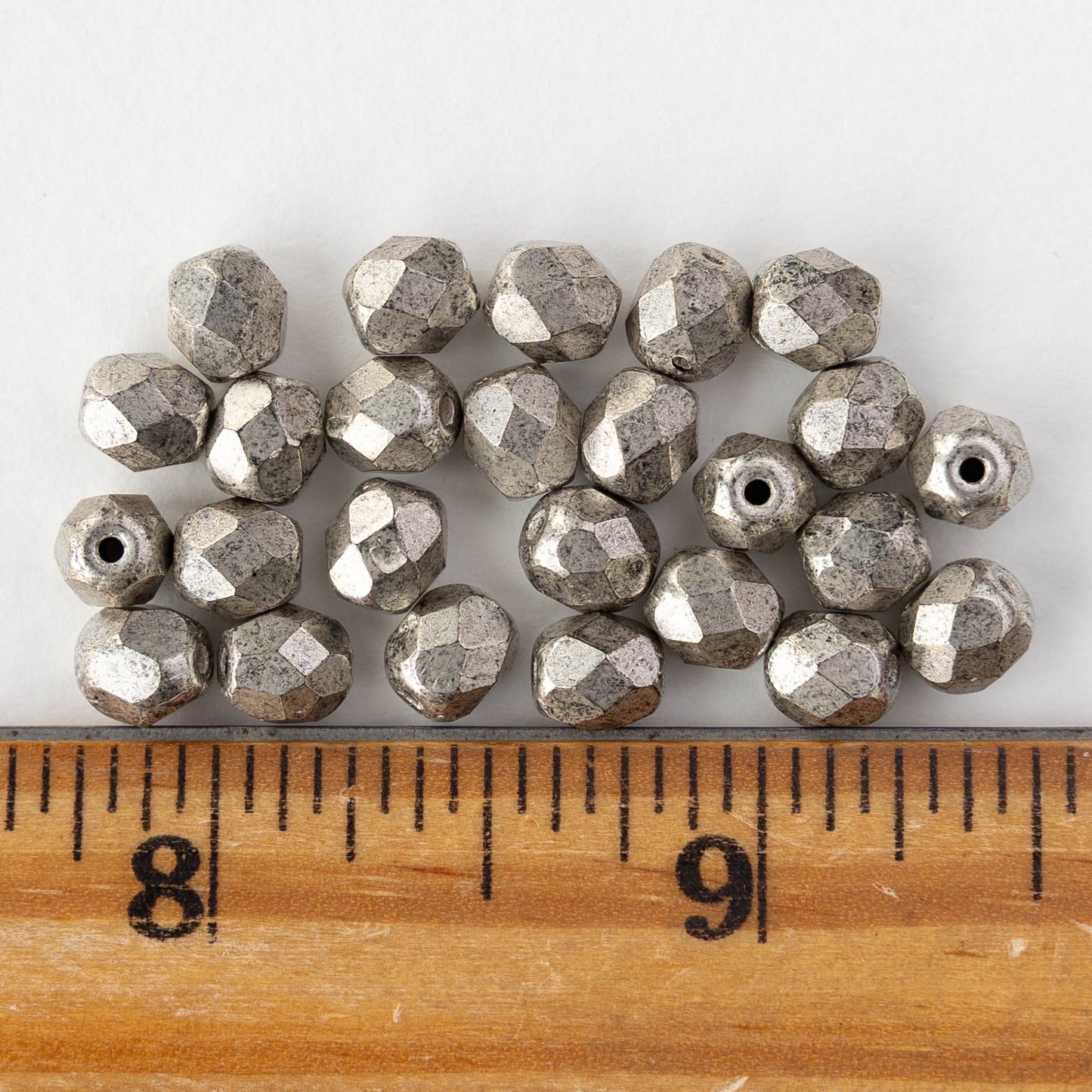 6mm Round Firepolished Beads - Antique Silver - 25 bead strand