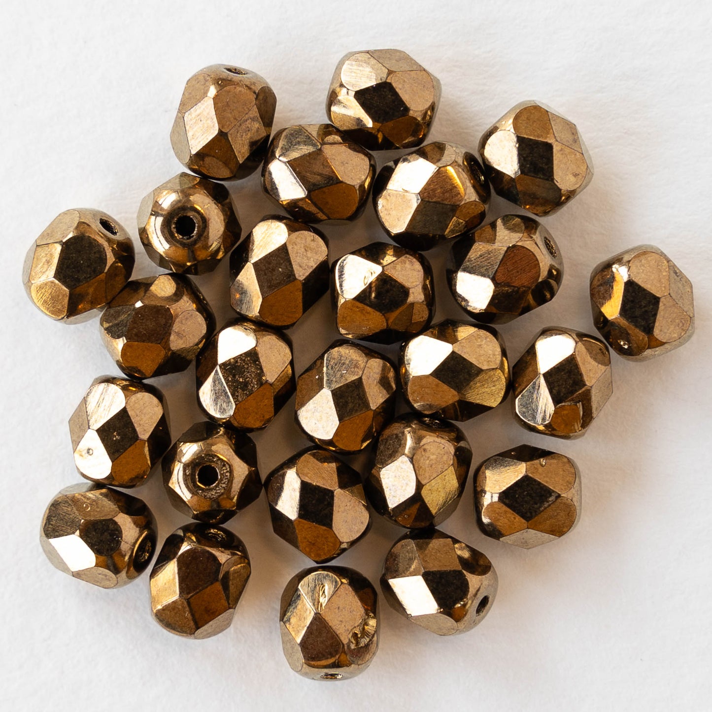 6mm Round Firepolished Beads - Golden Bronze - 25 Beads