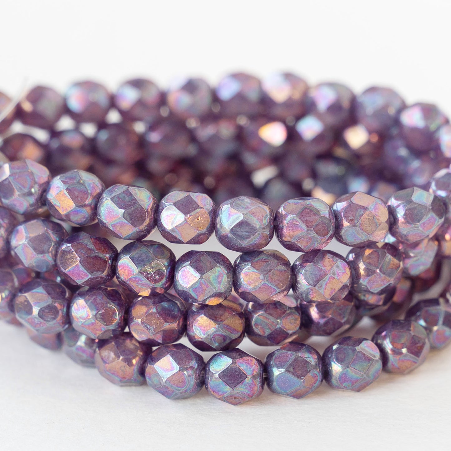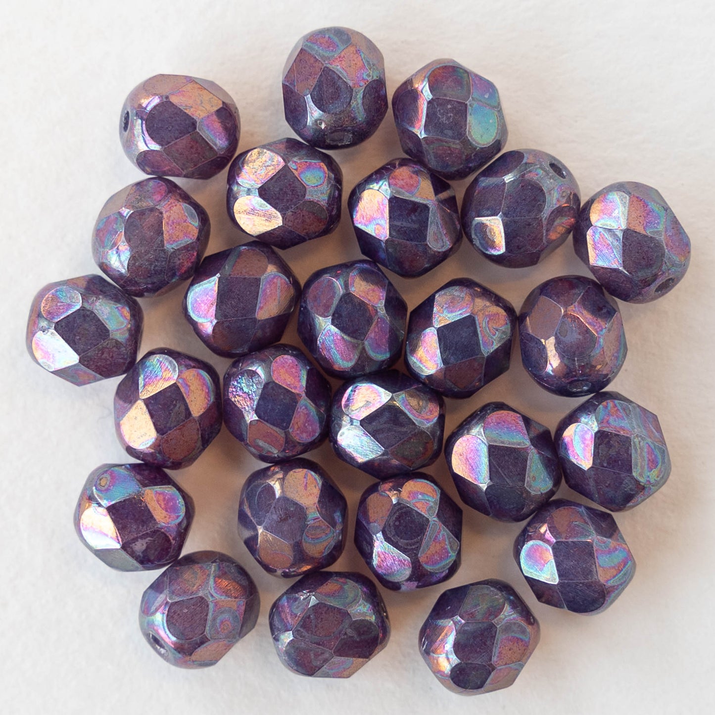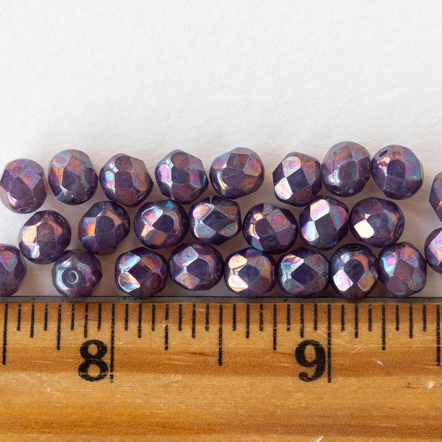 6mm Round Firepolished Beads - Purple Luster AB - 25 Beads