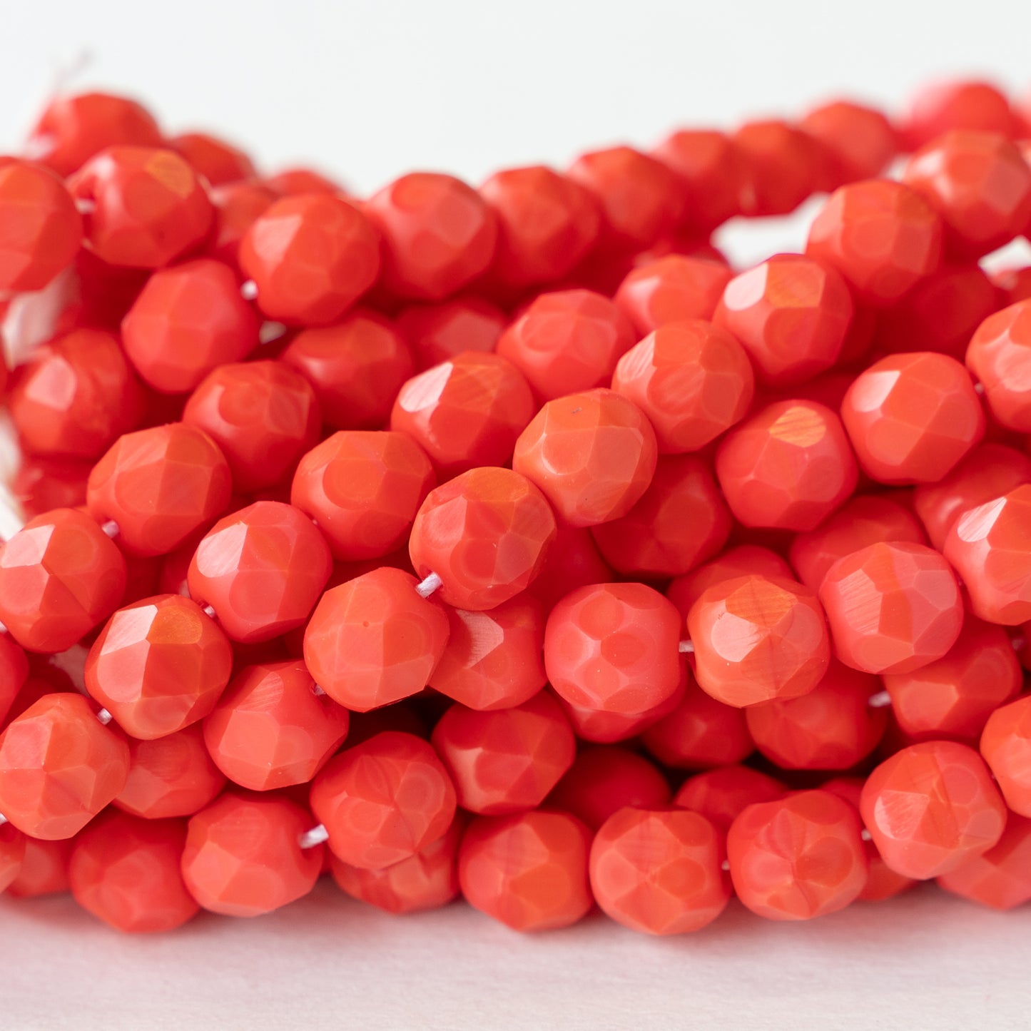 6mm Round Firepolished Beads - Opaque Coral Red - 25 beads