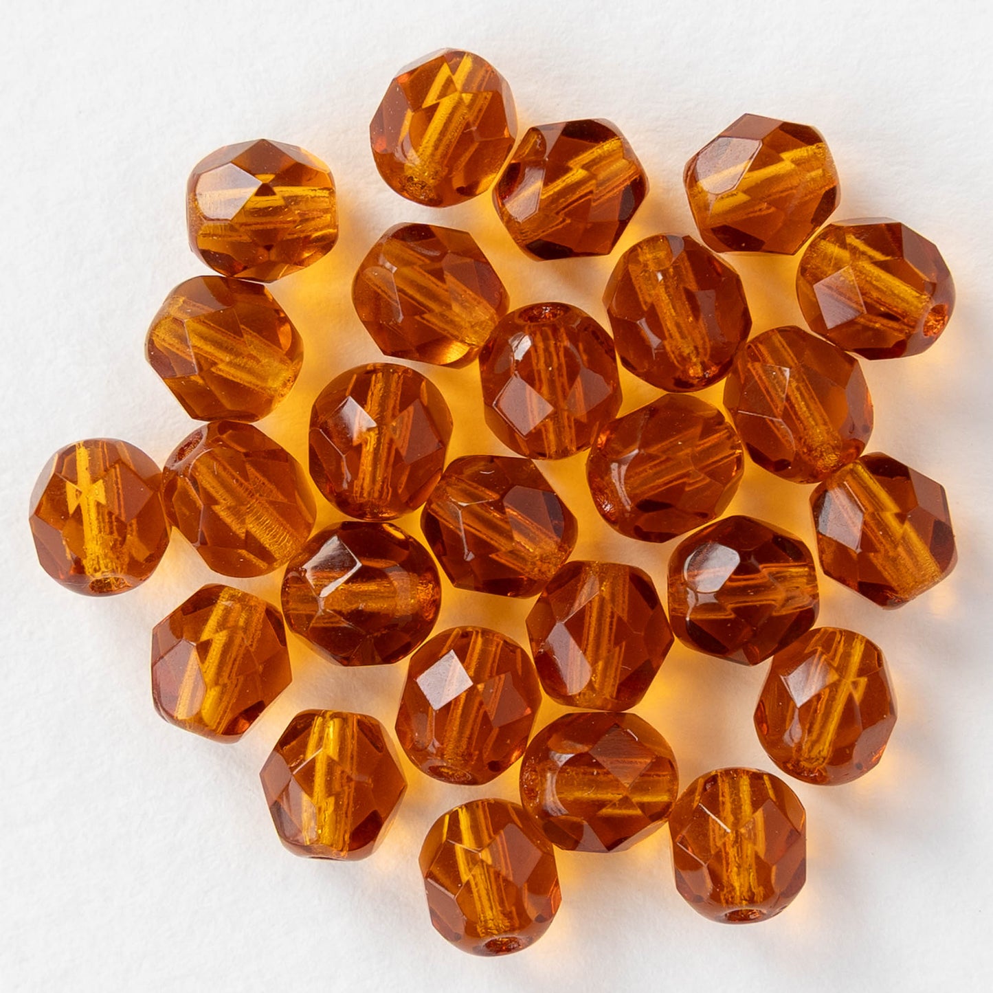 6mm Round Firepolished Beads - Topaz - 25 or 75 beads