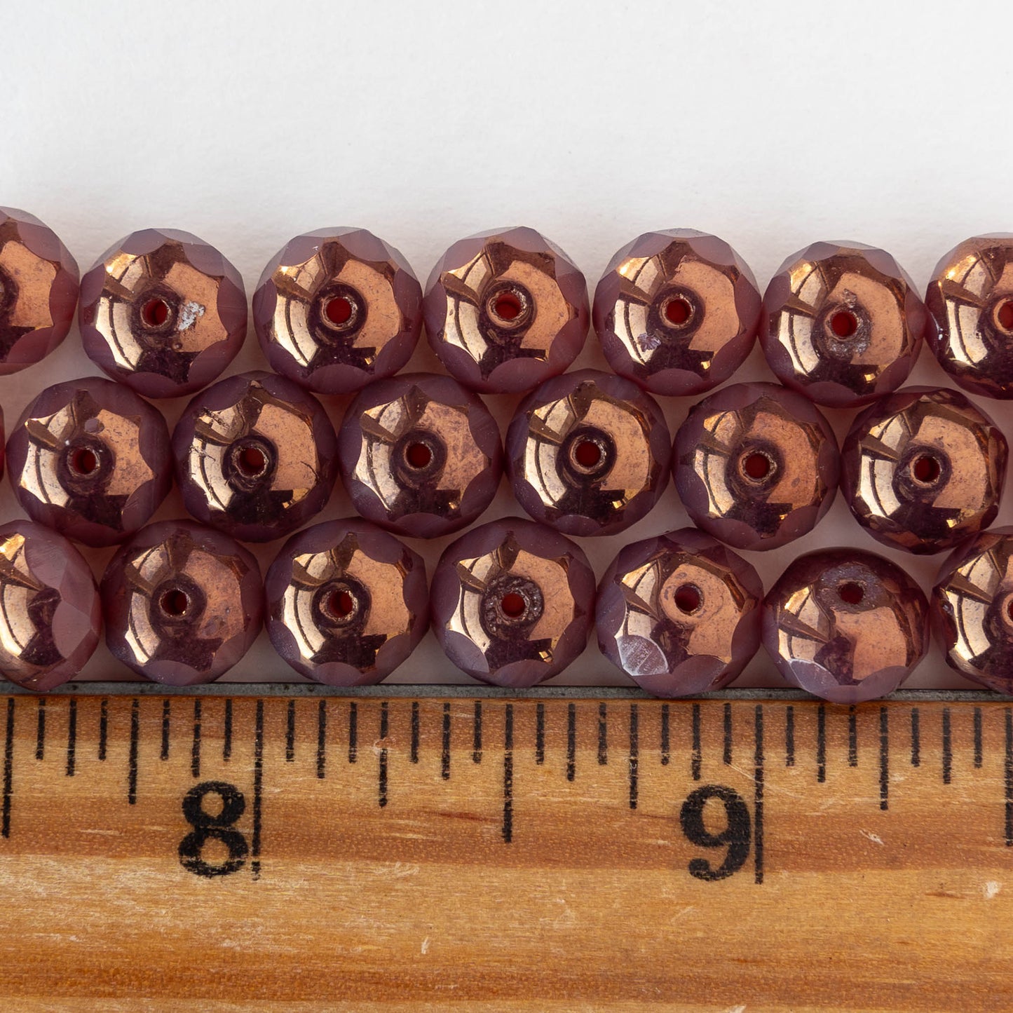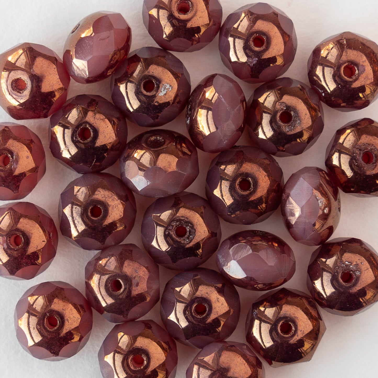 6x8mm Firepolished Rondelle Beads - Opaline Rosaline Copper - 10 or 20 Beads