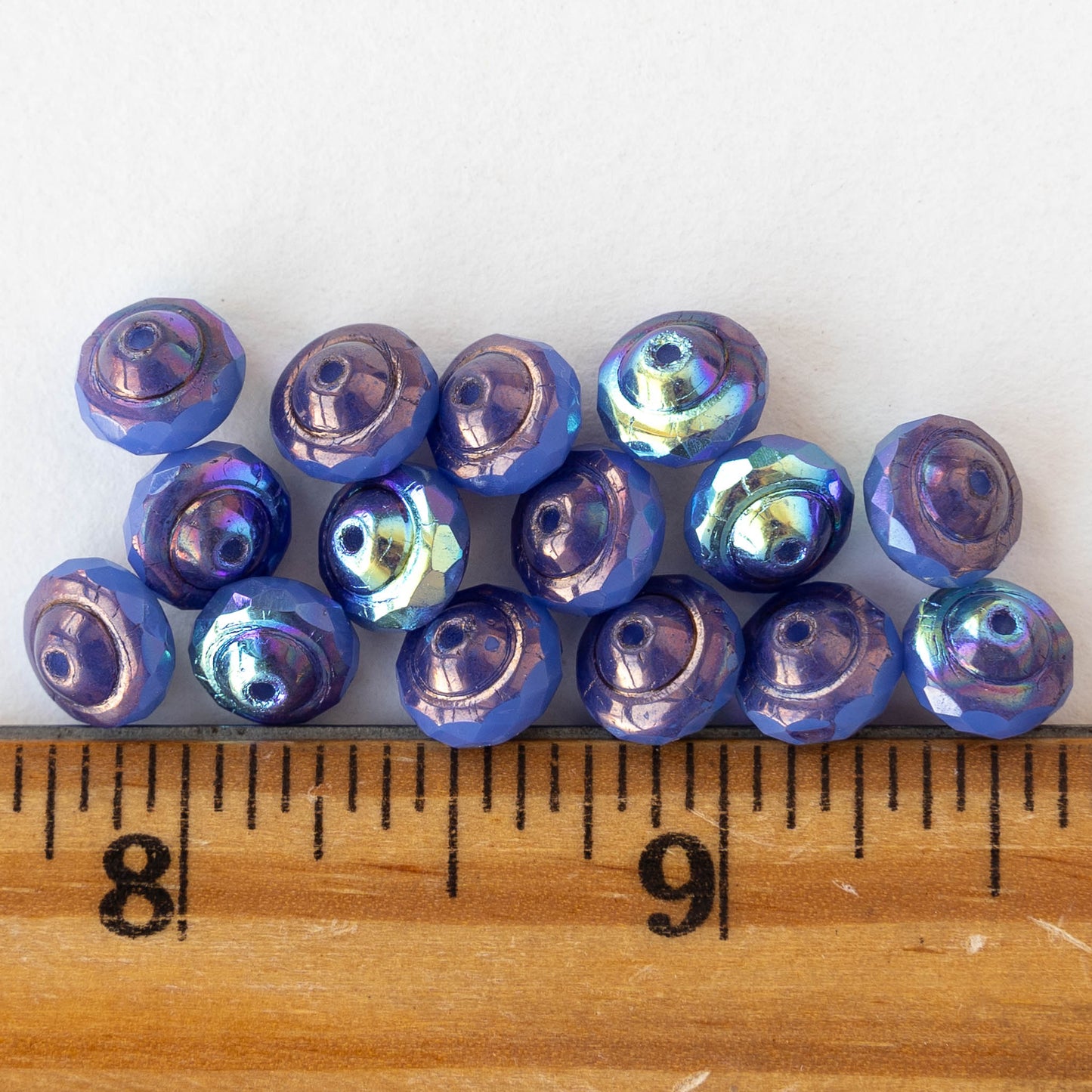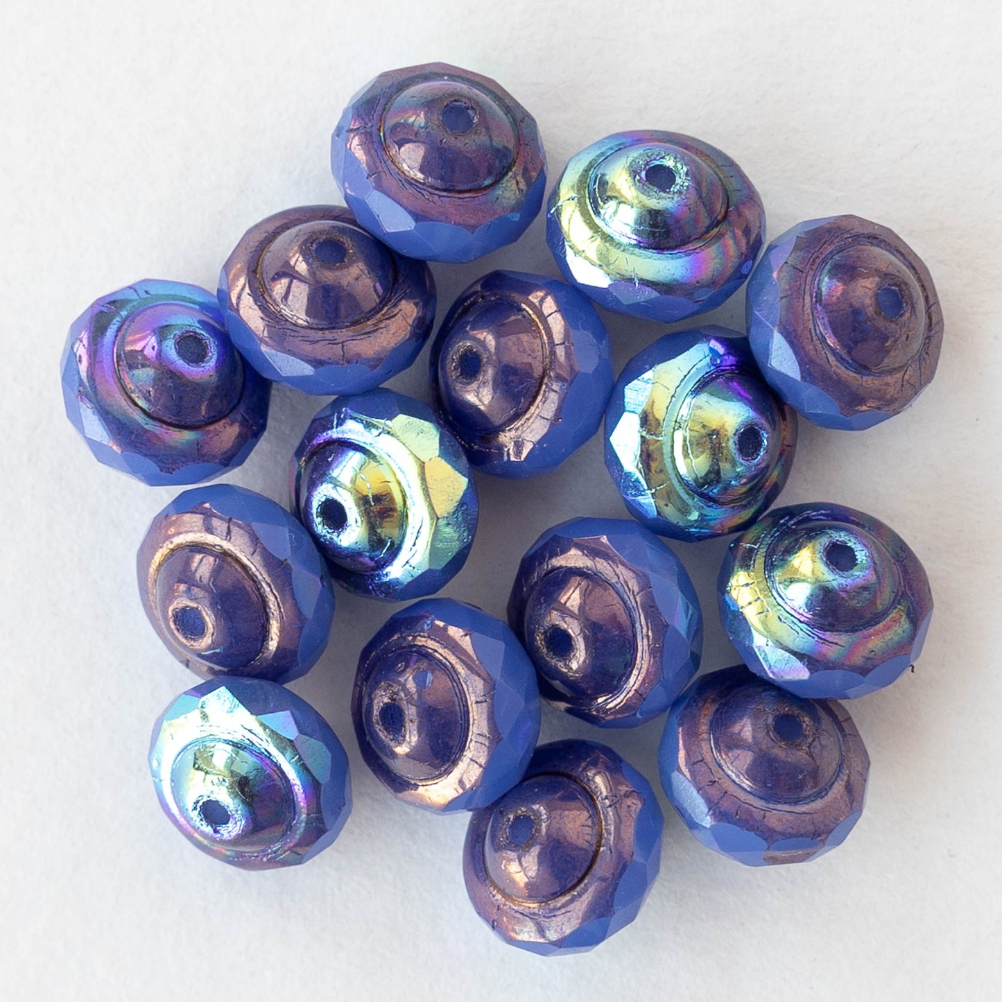 6x8mm Glass Saturn Beads - Opaline Periwinkle Rainbow AB - 15 Beads