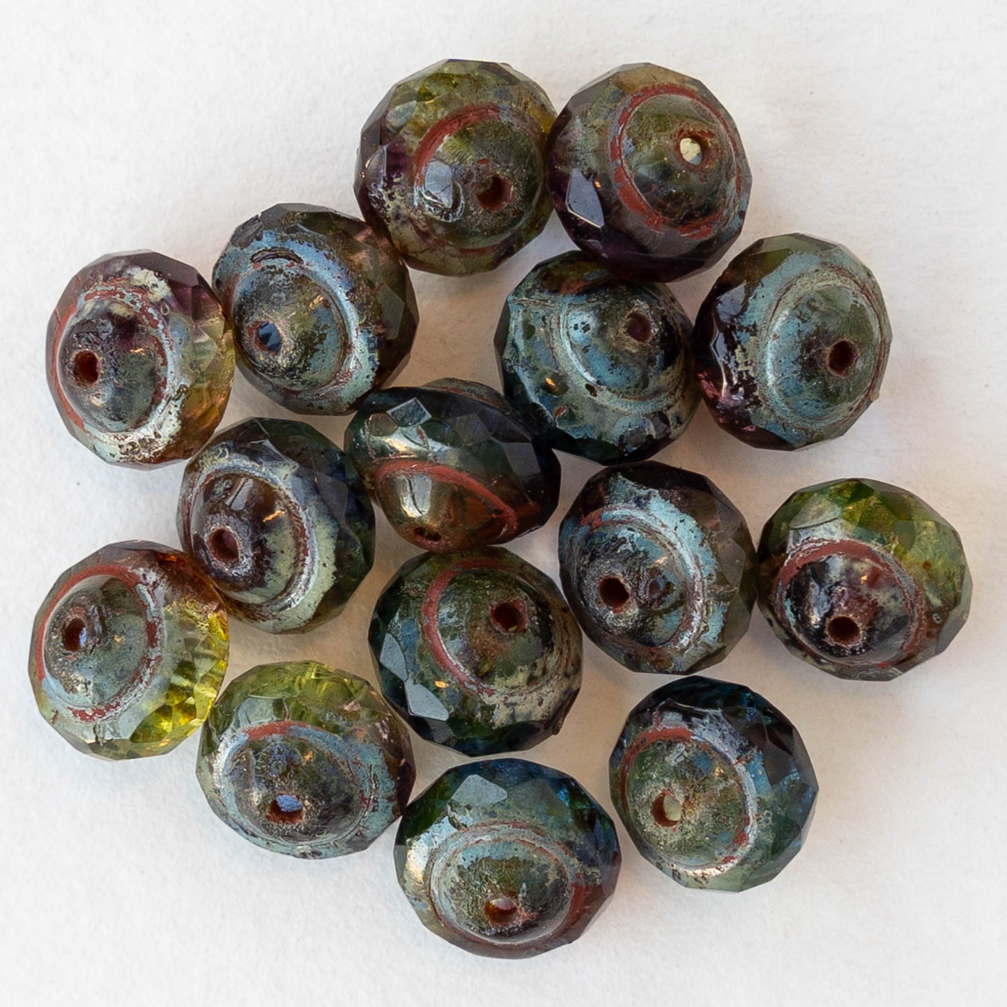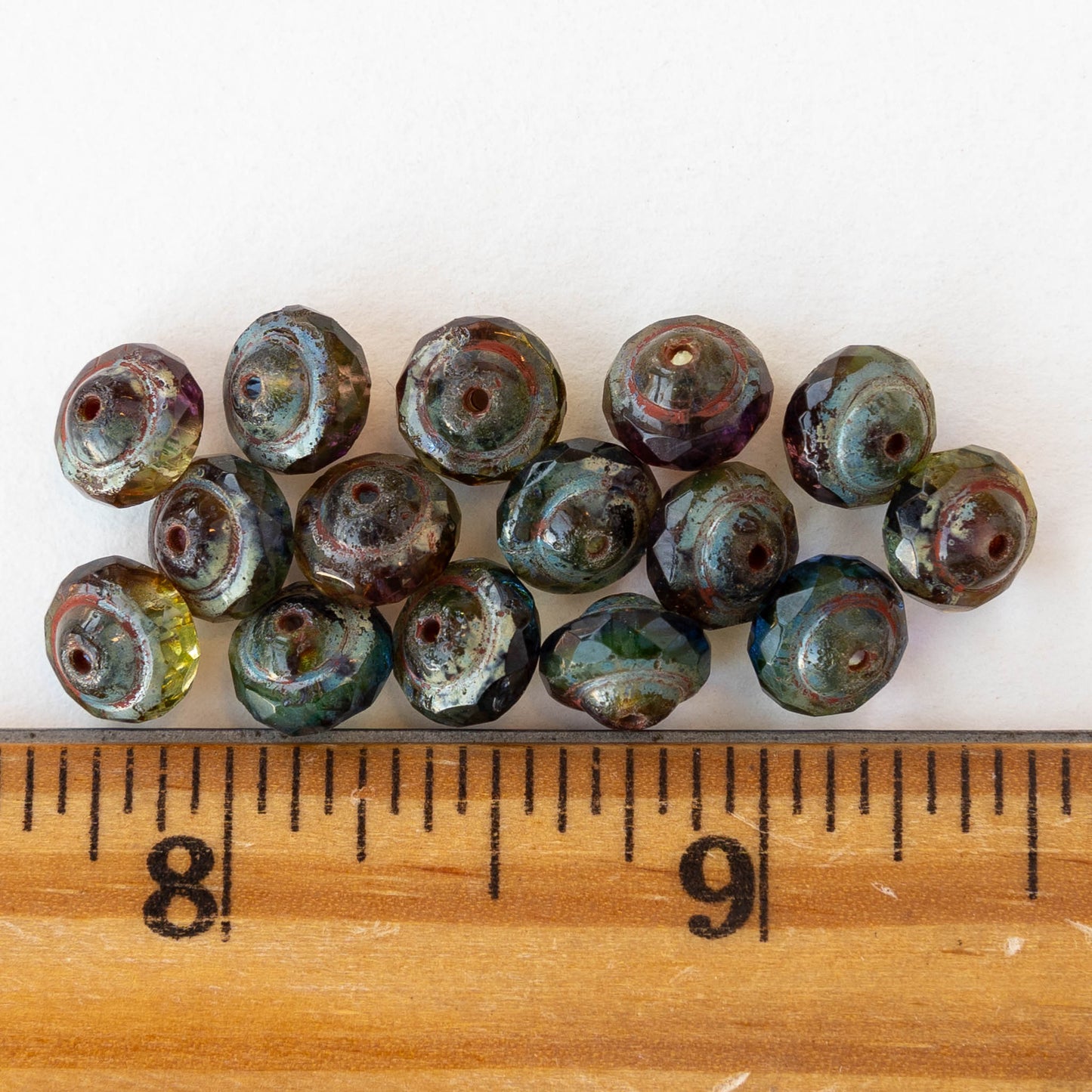 6x8mm Glass Saturn Beads - Transparent Sapphire and Purple Picasso - 15 Beads