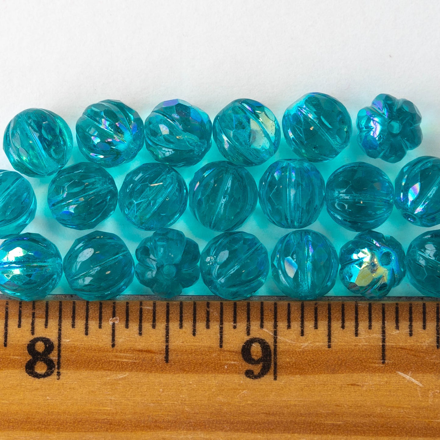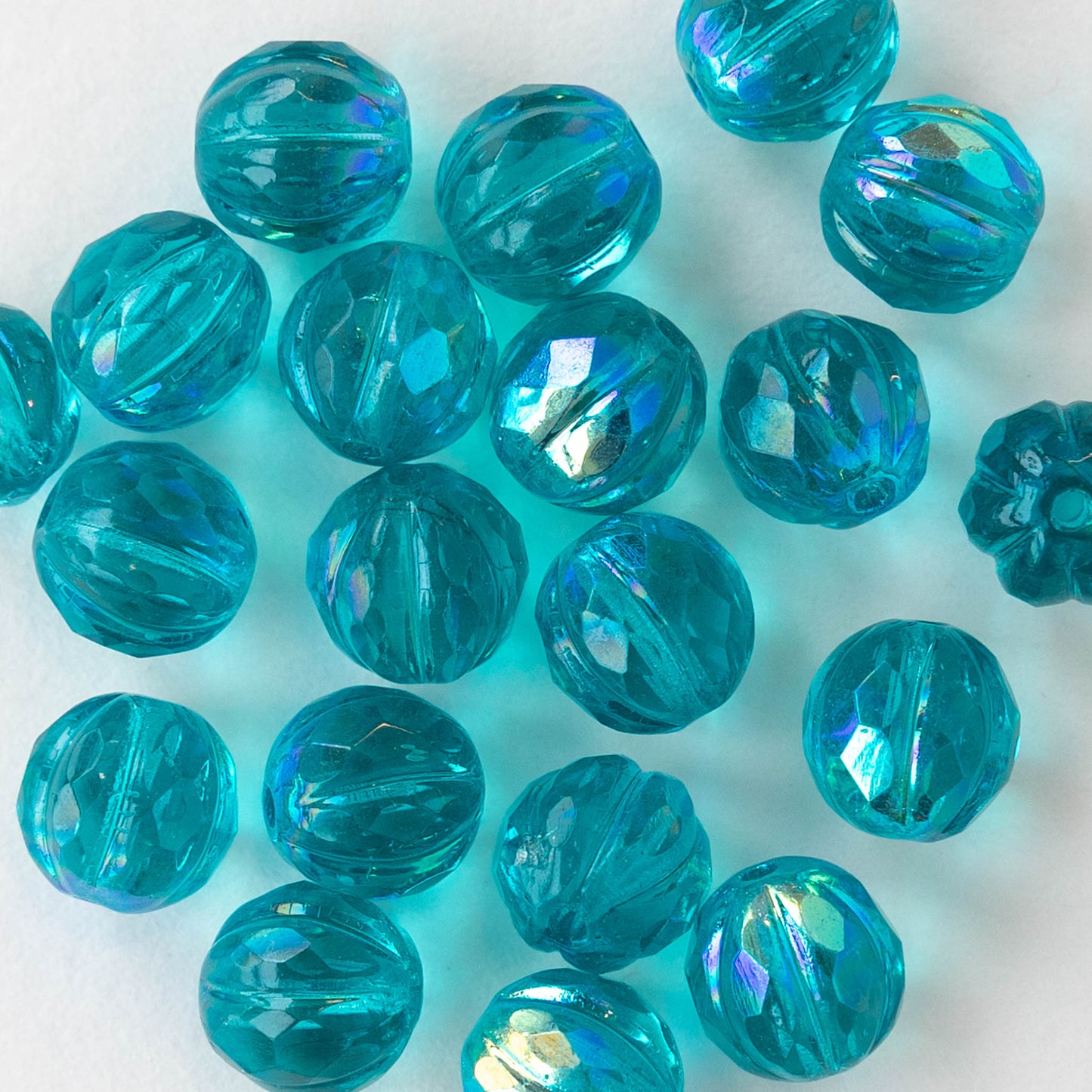 8mm Faceted Round Melon Beads - Teal with AB - 20 beads