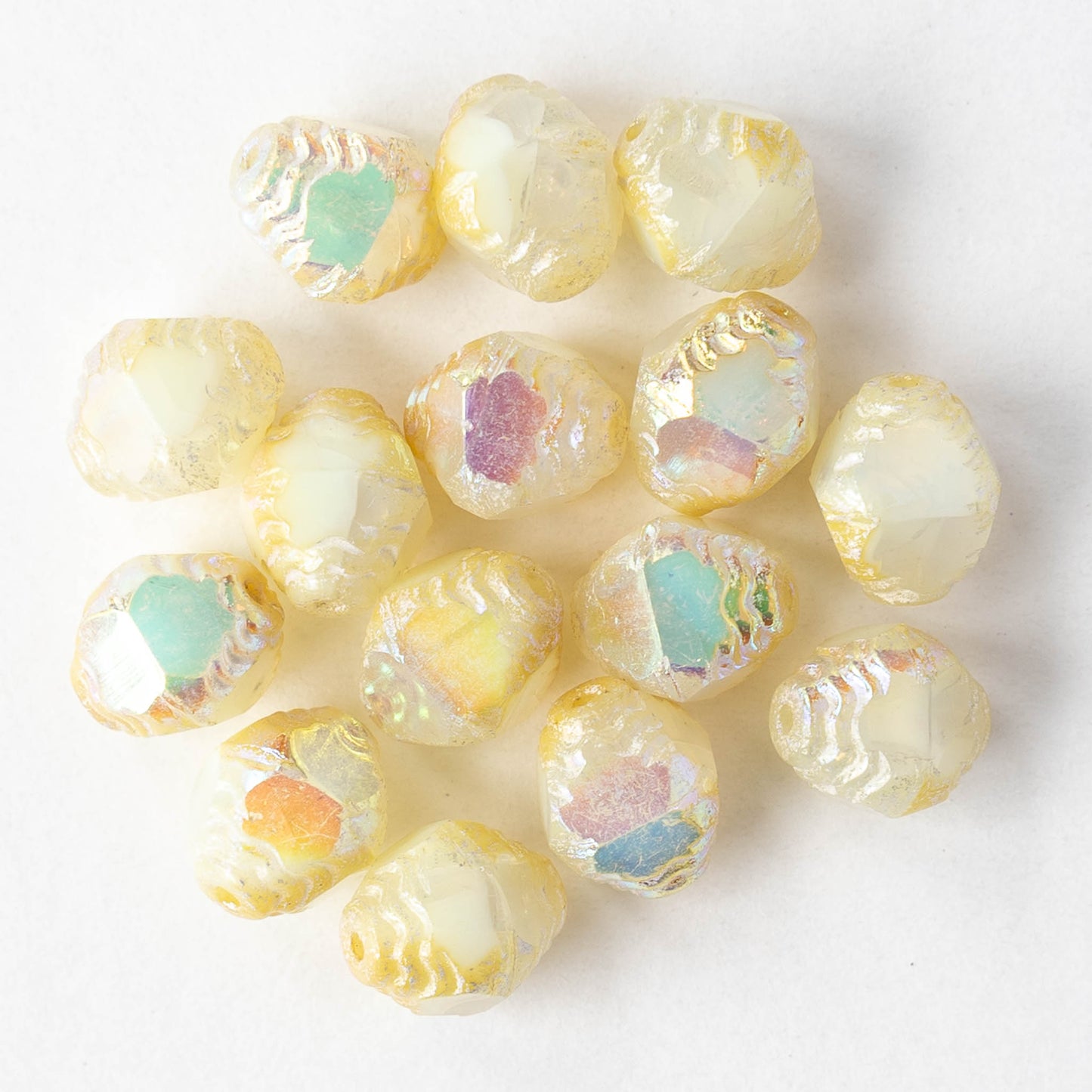 9mm Faceted Glass Bicone Beads - Ivory AB - 6 or 12 beads