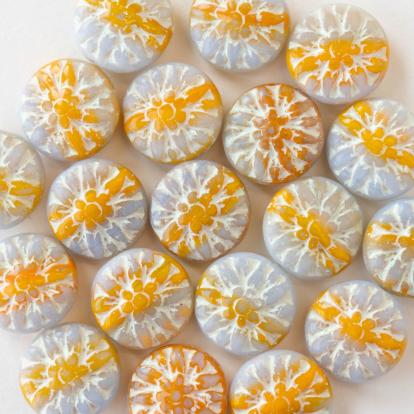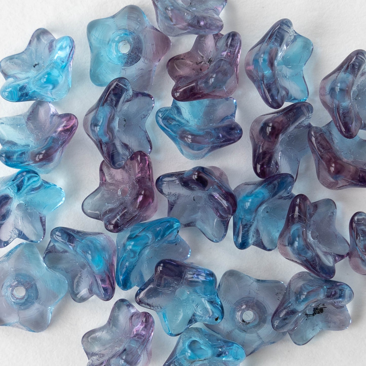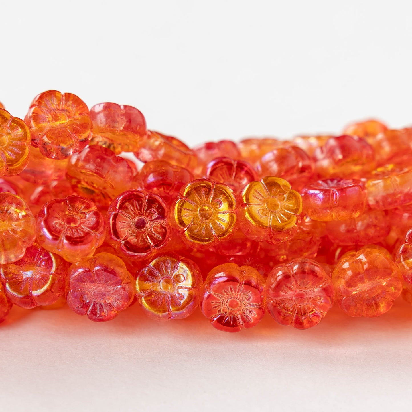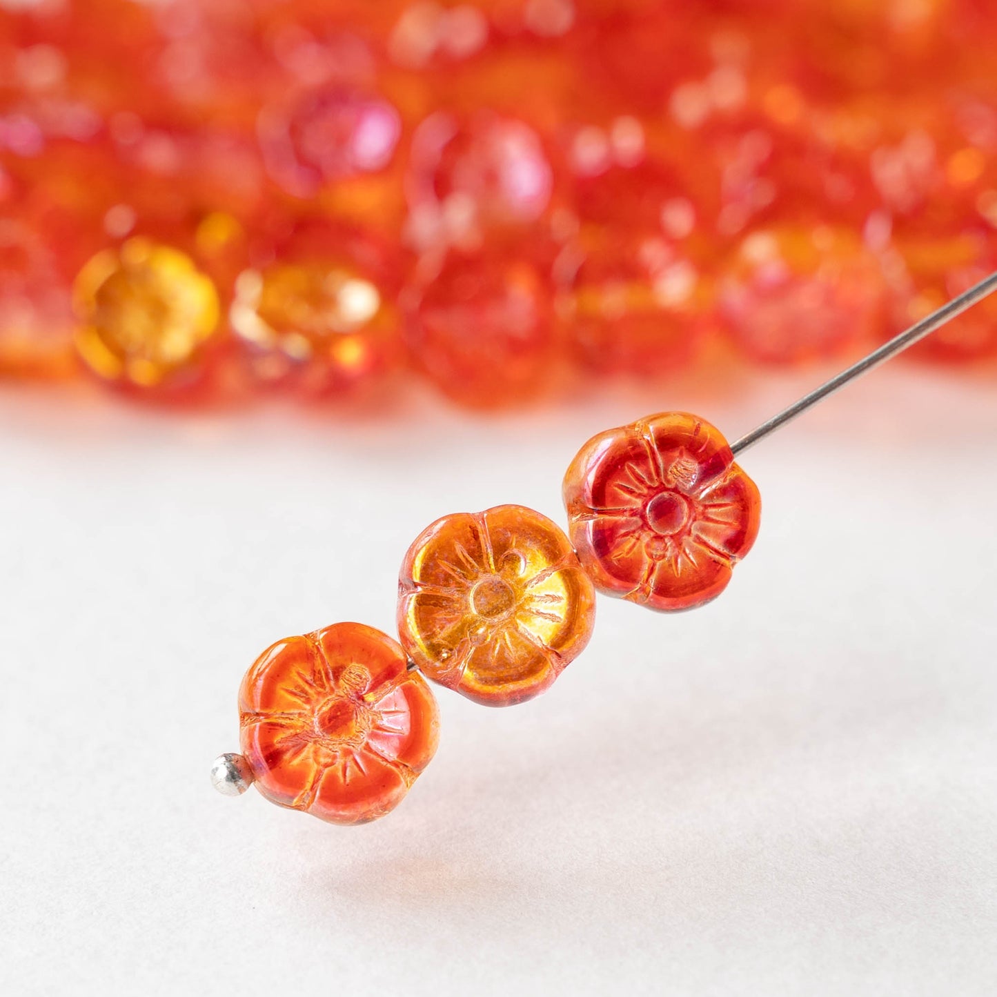 Glass Flower beads of all varieties in a gorgeous selection of colors. Cute little 6mm flowers make sweet necklaces and bracelets when strung together with spacer beads. Our larger flower sizes make beautiful focal points for all types of jewelry. Shop hibiscus, lily, tulip, and daisy flowers, as well as a fun assortment of leaf beads. Enjoy browsing our virtual garden!