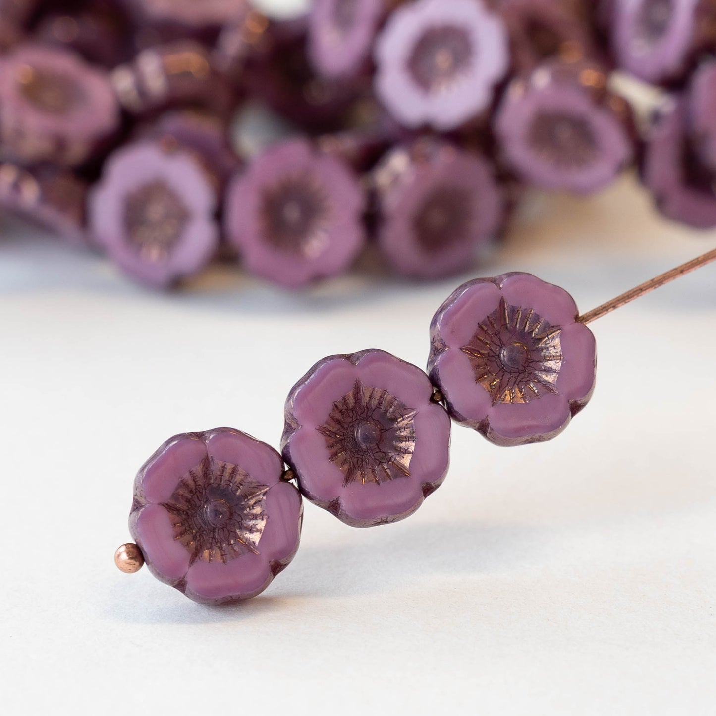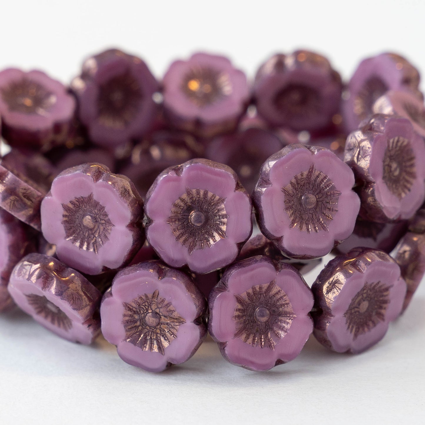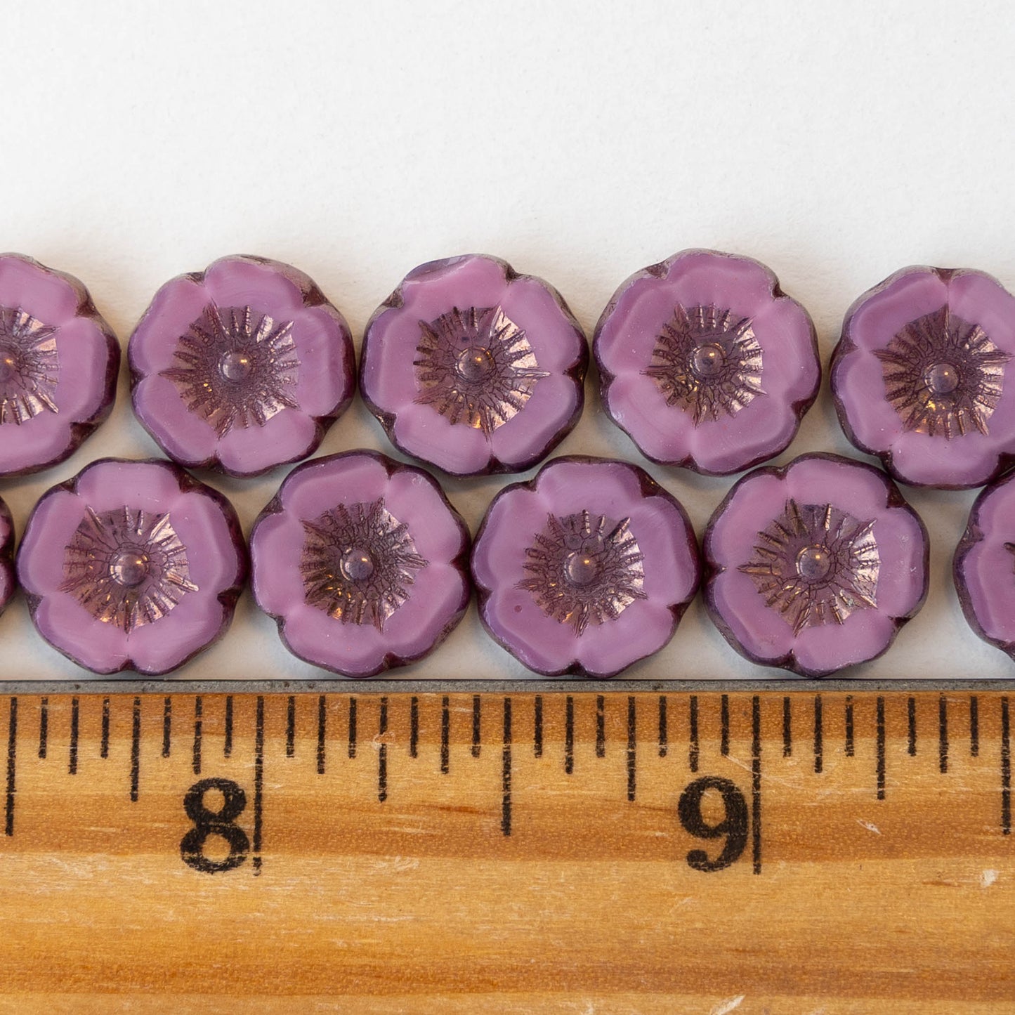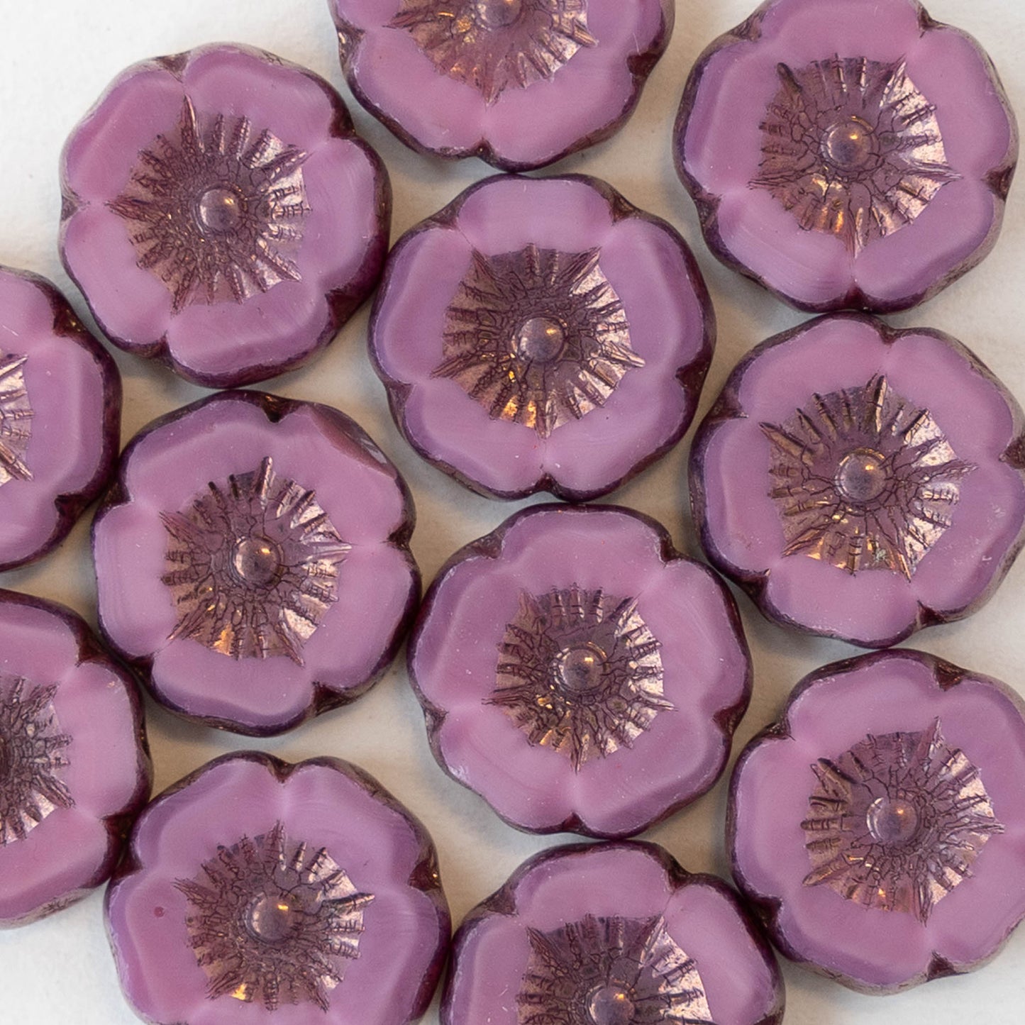 12mm Table Cut Glass Hibiscus Flower Beads - Opaque Pink Silk with Bronze Wash - 6 or 12 Beads