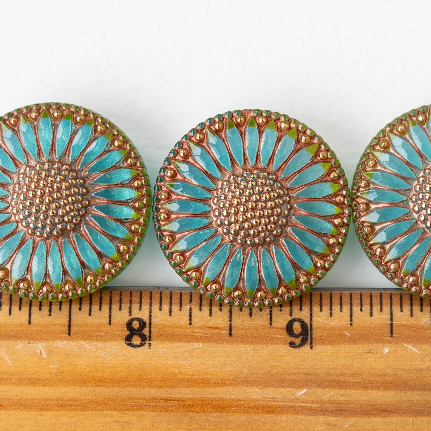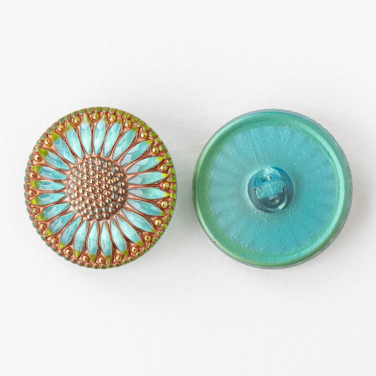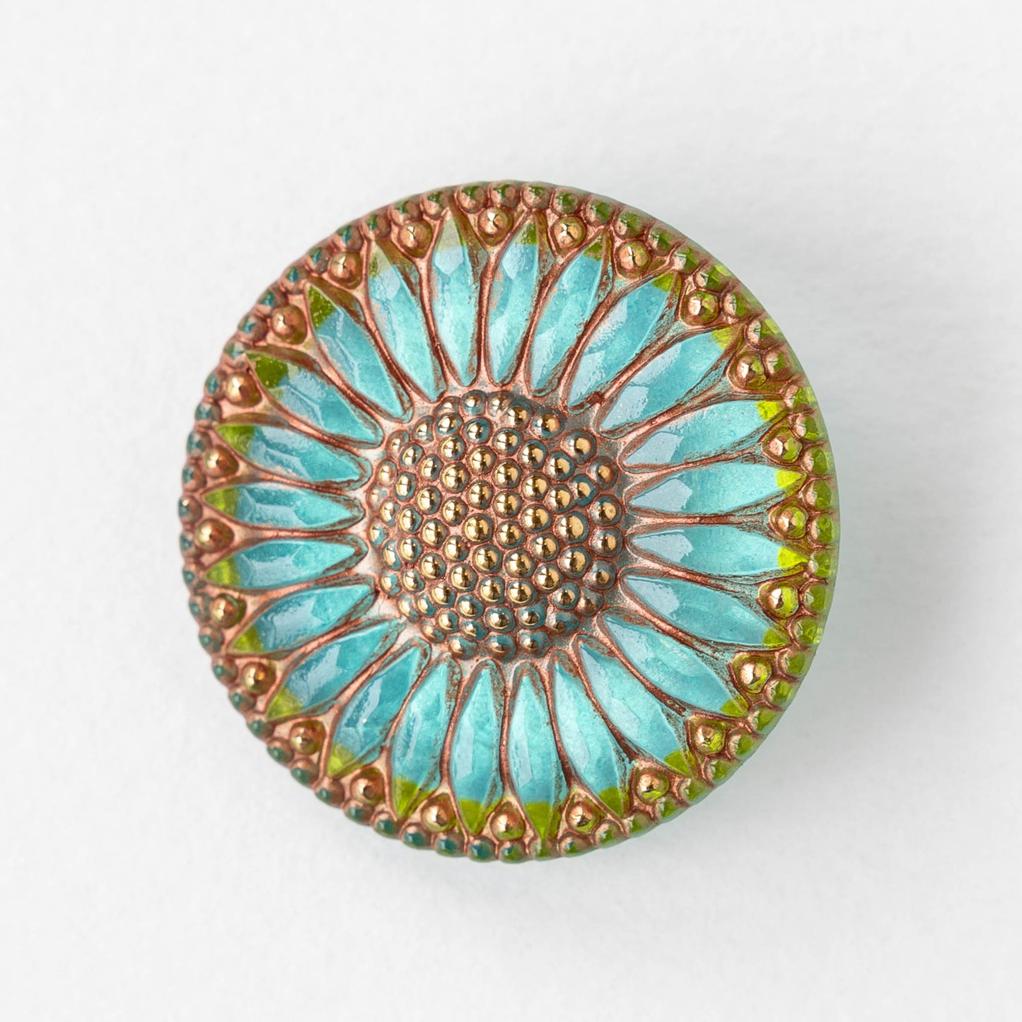 32mm Sunflower Buttons - Aqua with Copper and Gold - 1 Button