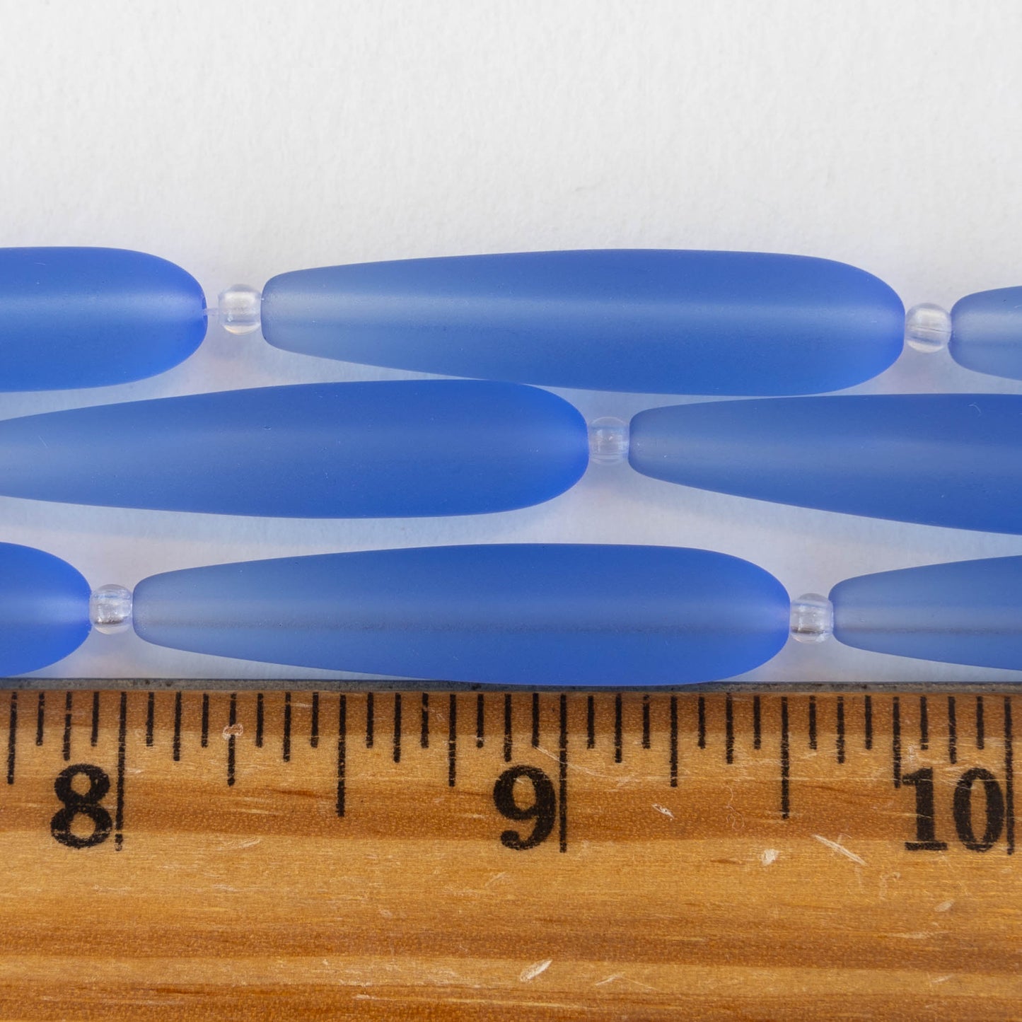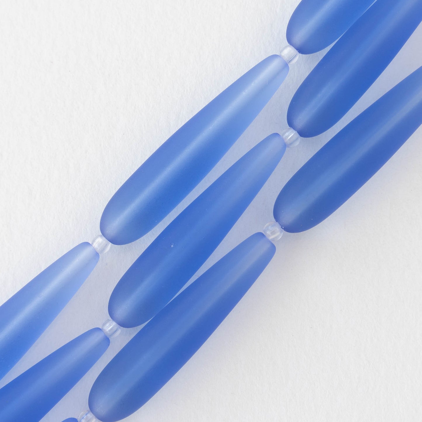 8x38mm Frosted Glass Long Drill Drops - Sapphire Blue - 10 Beads