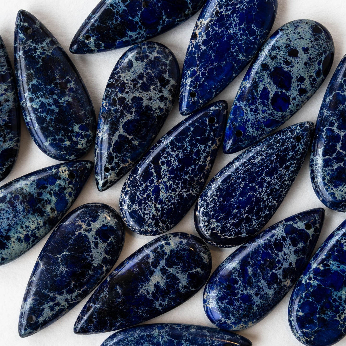13x35mm Impression Jasper Teardrops - Blue - 2 Beads