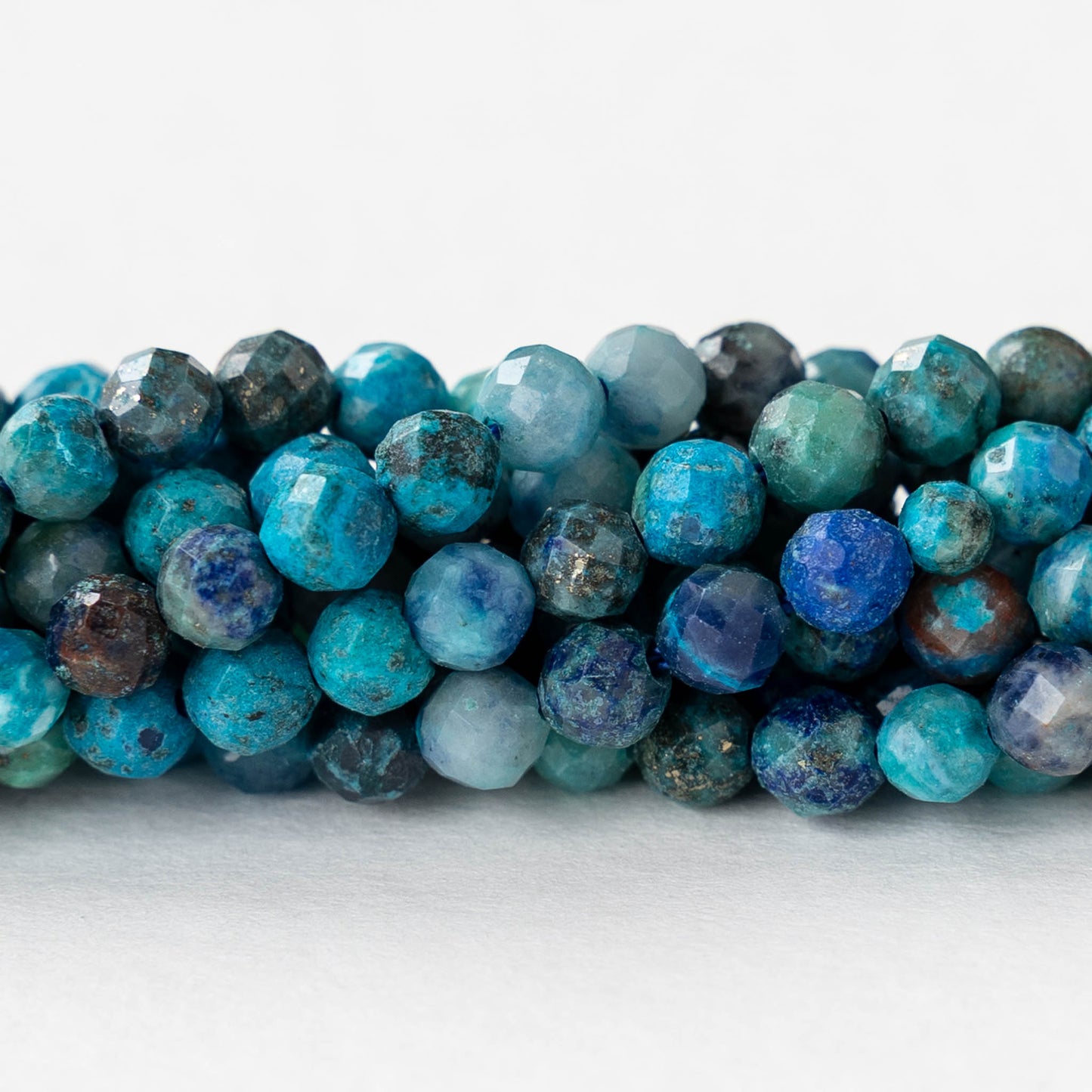 4mm Faceted Round Chrysocolla Stone Beads - Whole or Half Strand