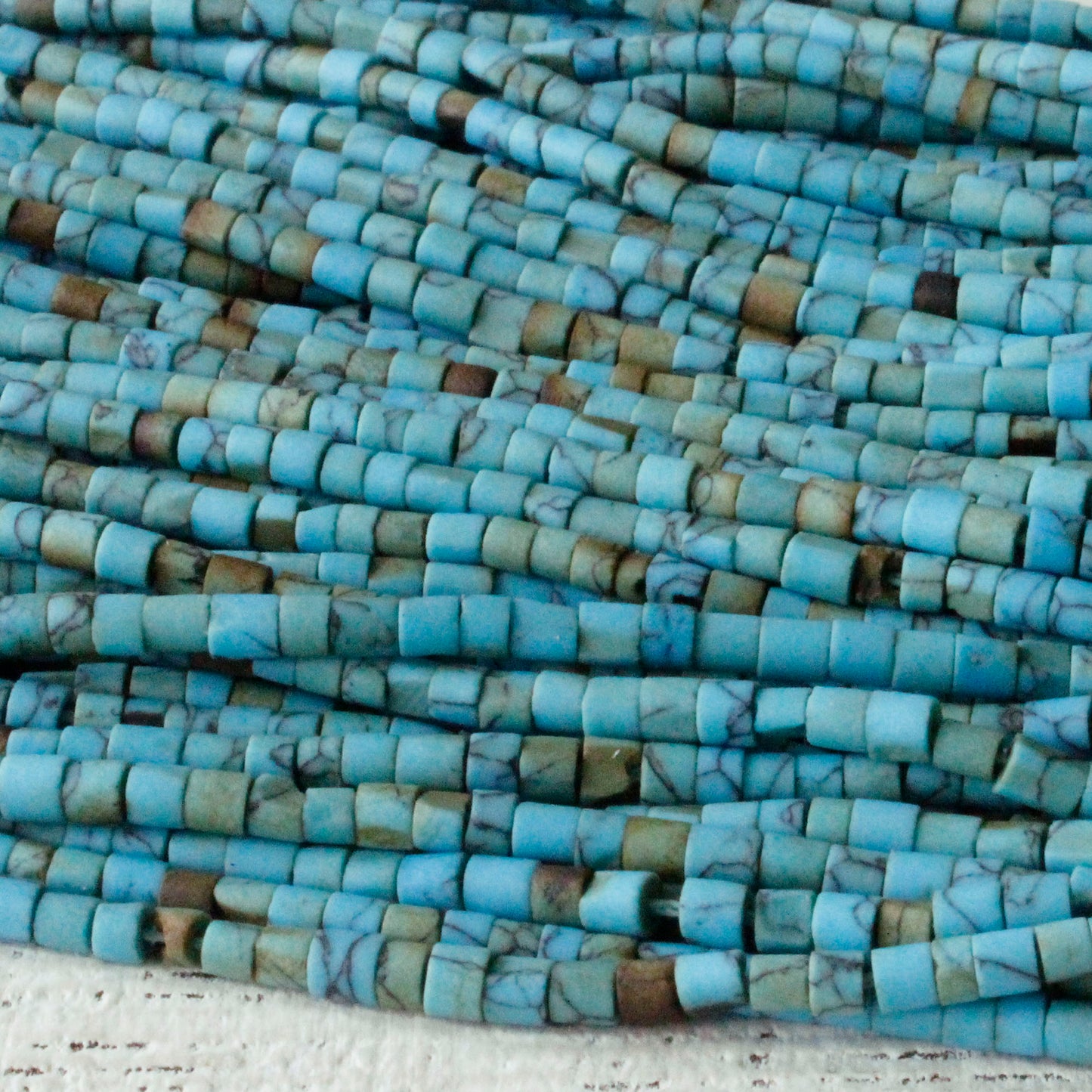 A rich natural blue turquoise. Gorgeous small tube seed beads. Not dyed. All natural turquoise. Some variation in size hole wise. Very consistent width.