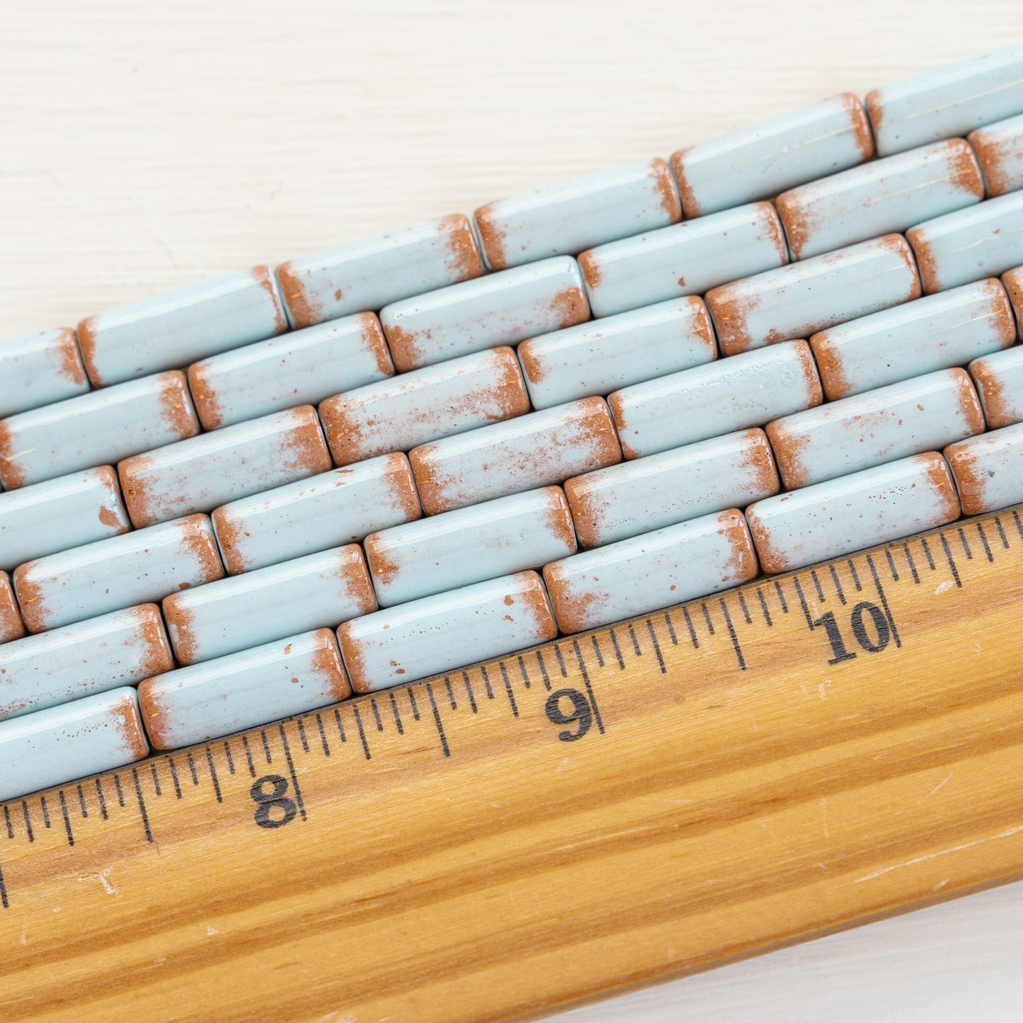 17mm Shiny Glazed Ceramic Tube Beads - Baby Blue - 10 or 30
