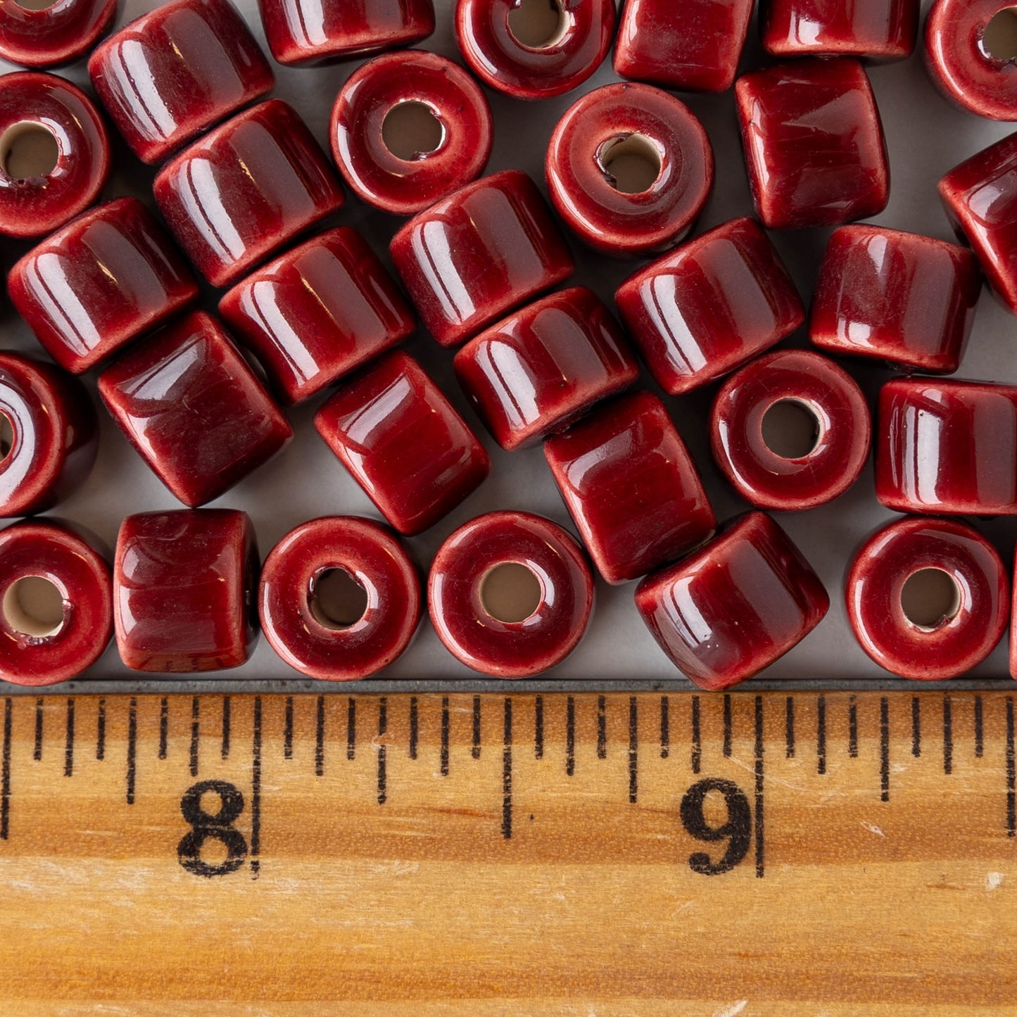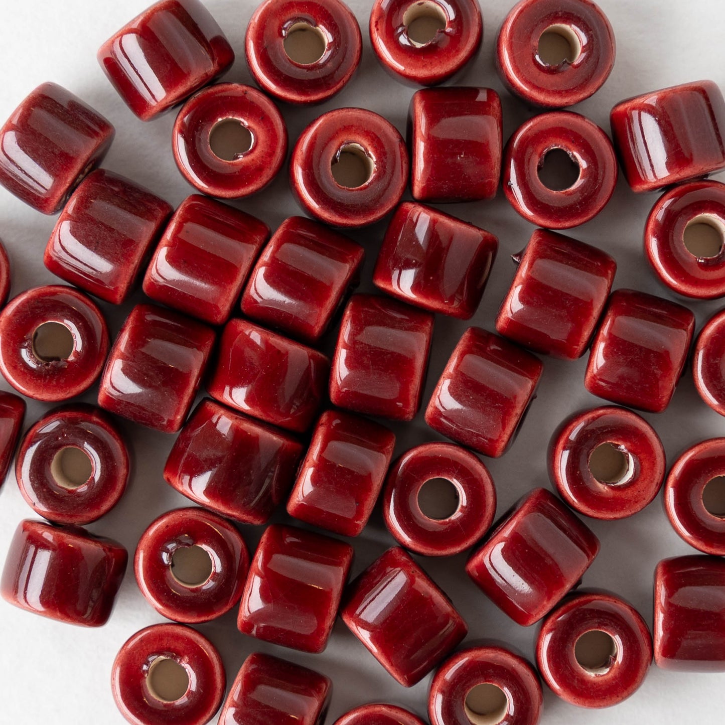 7x8mm Glazed Ceramic Tube Beads - Red - 10 or 30 beads