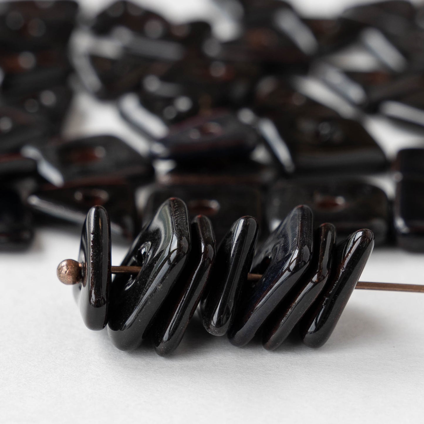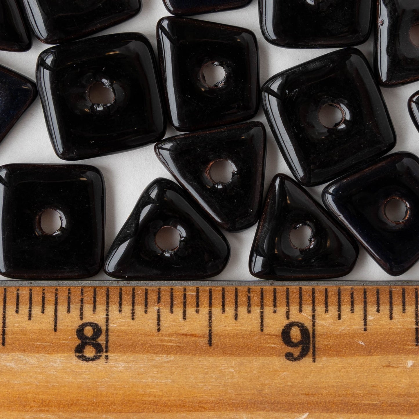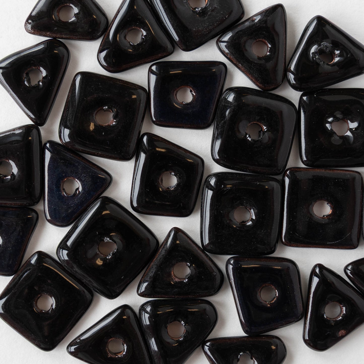 Glazed Ceramic Irregular Chip beads - Black - 10 or 30 beads