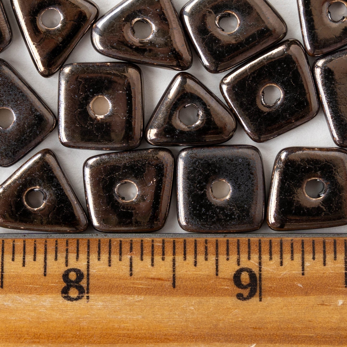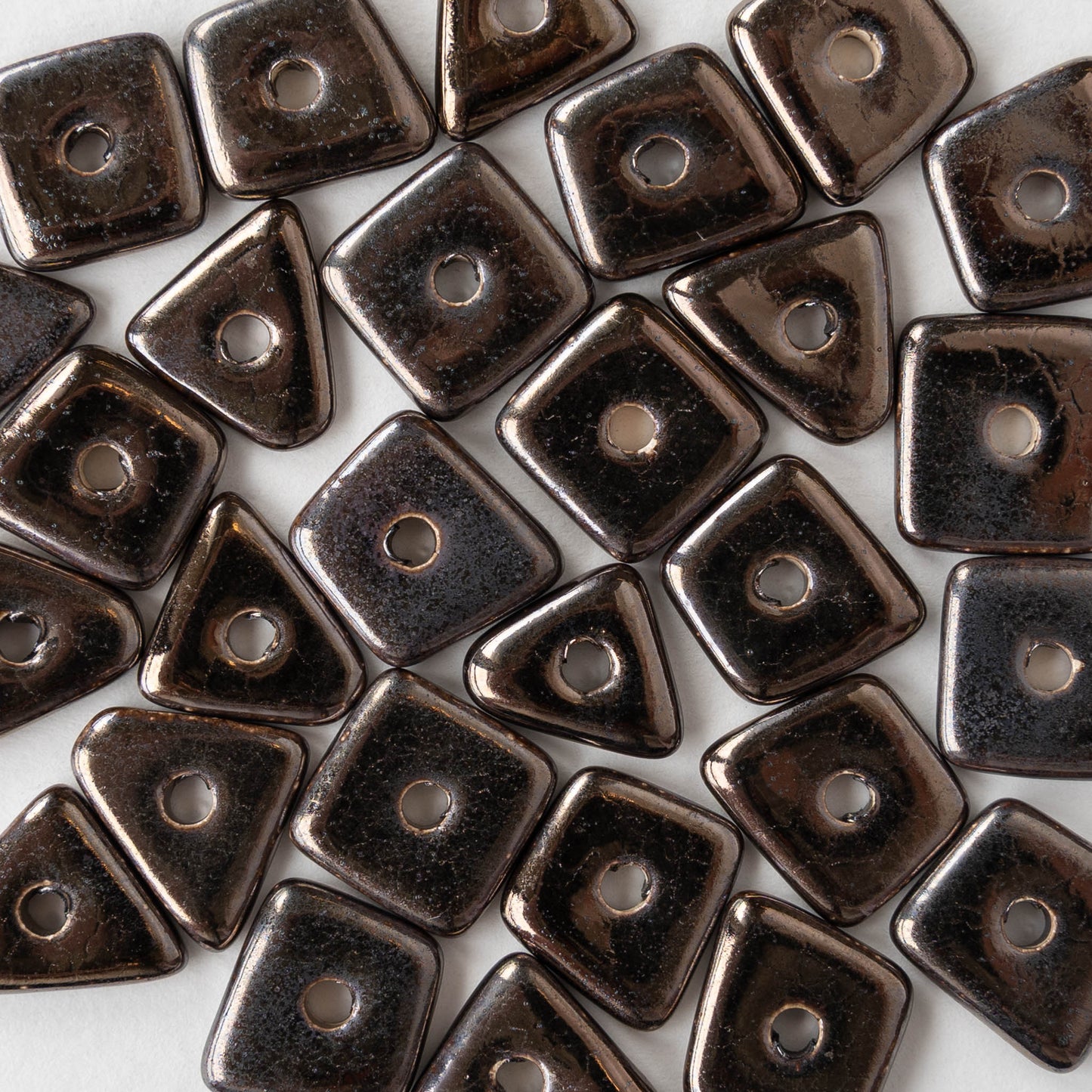 Irregular ceramic chip or disk beads.