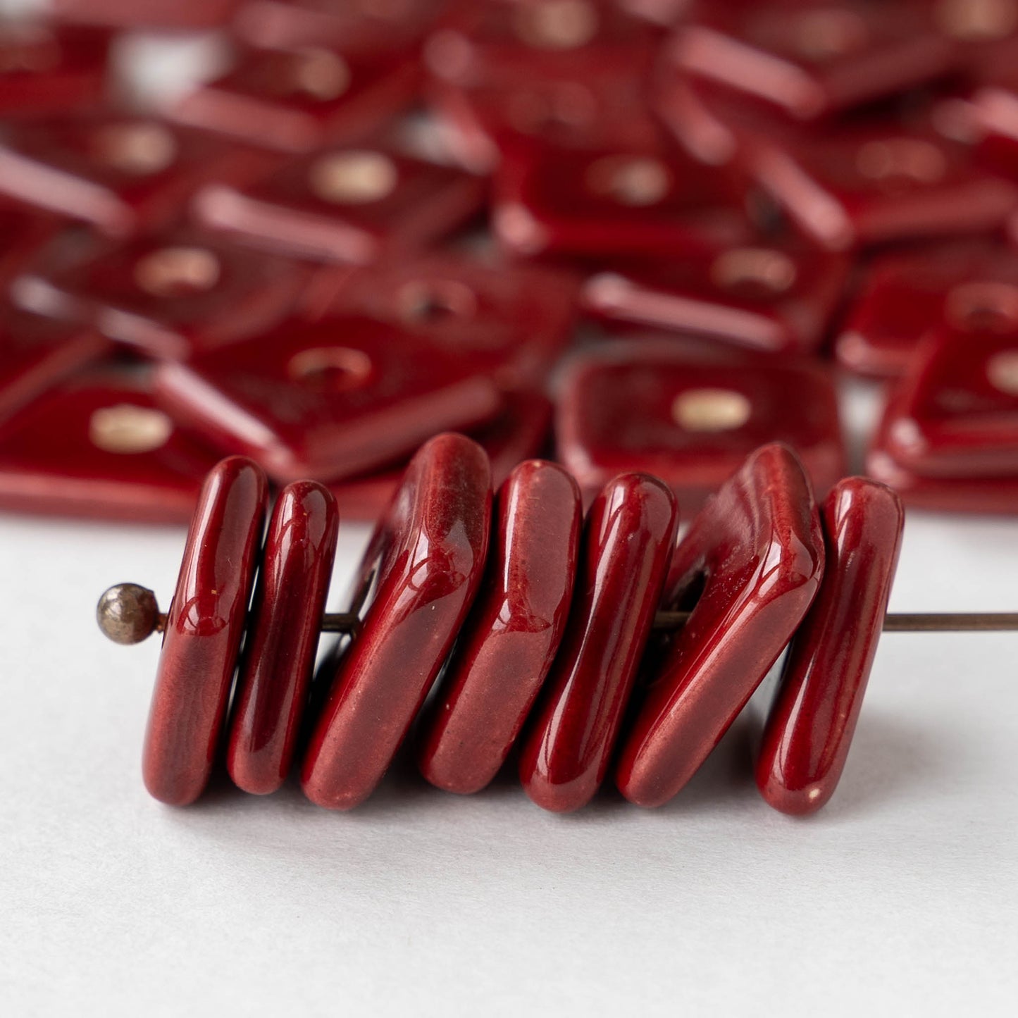 Glazed Ceramic Irregular Chip beads - Red - 10 or 30 beads