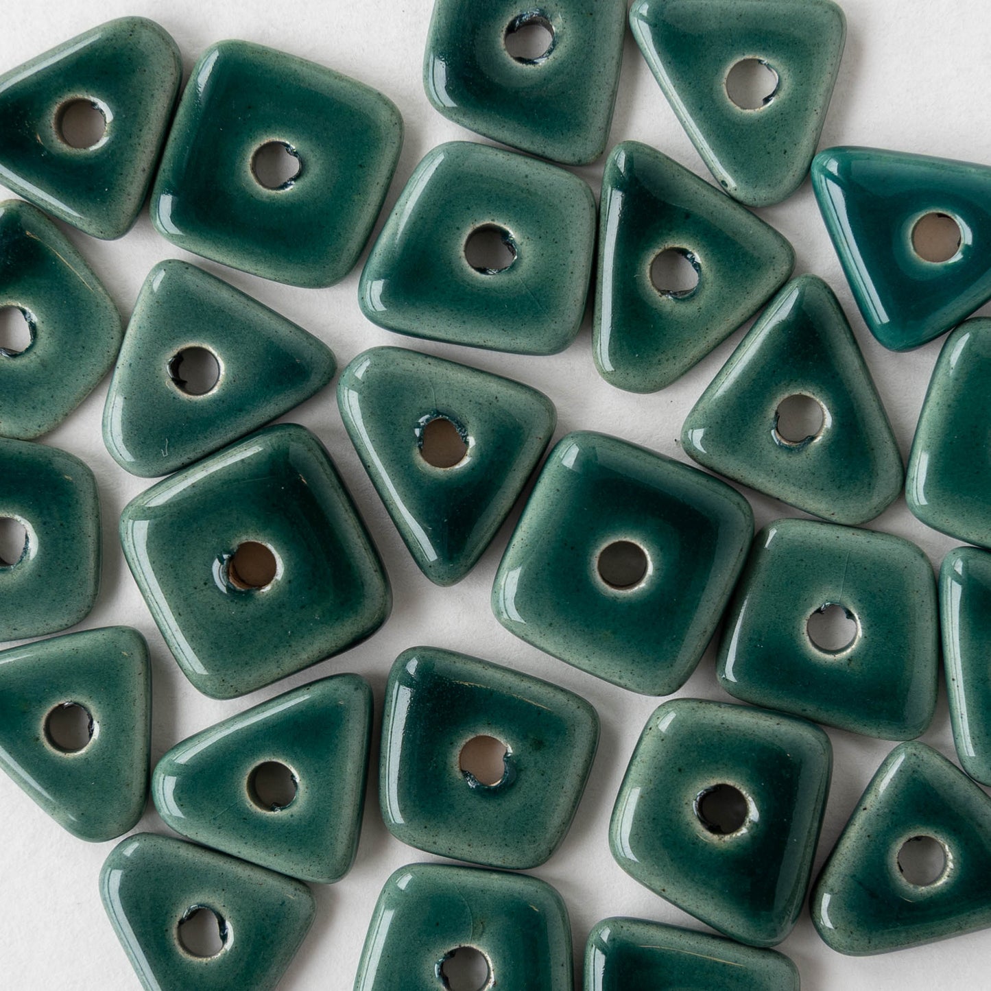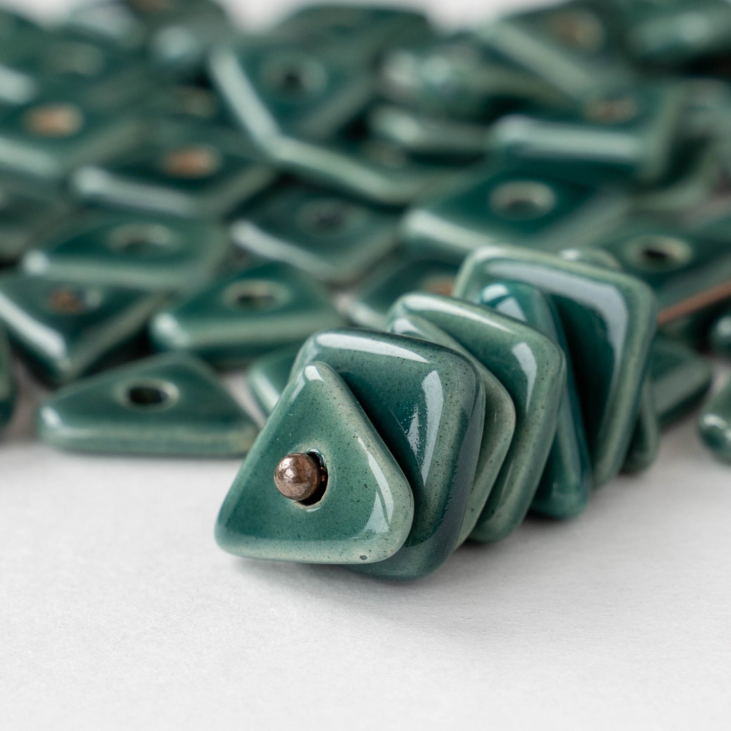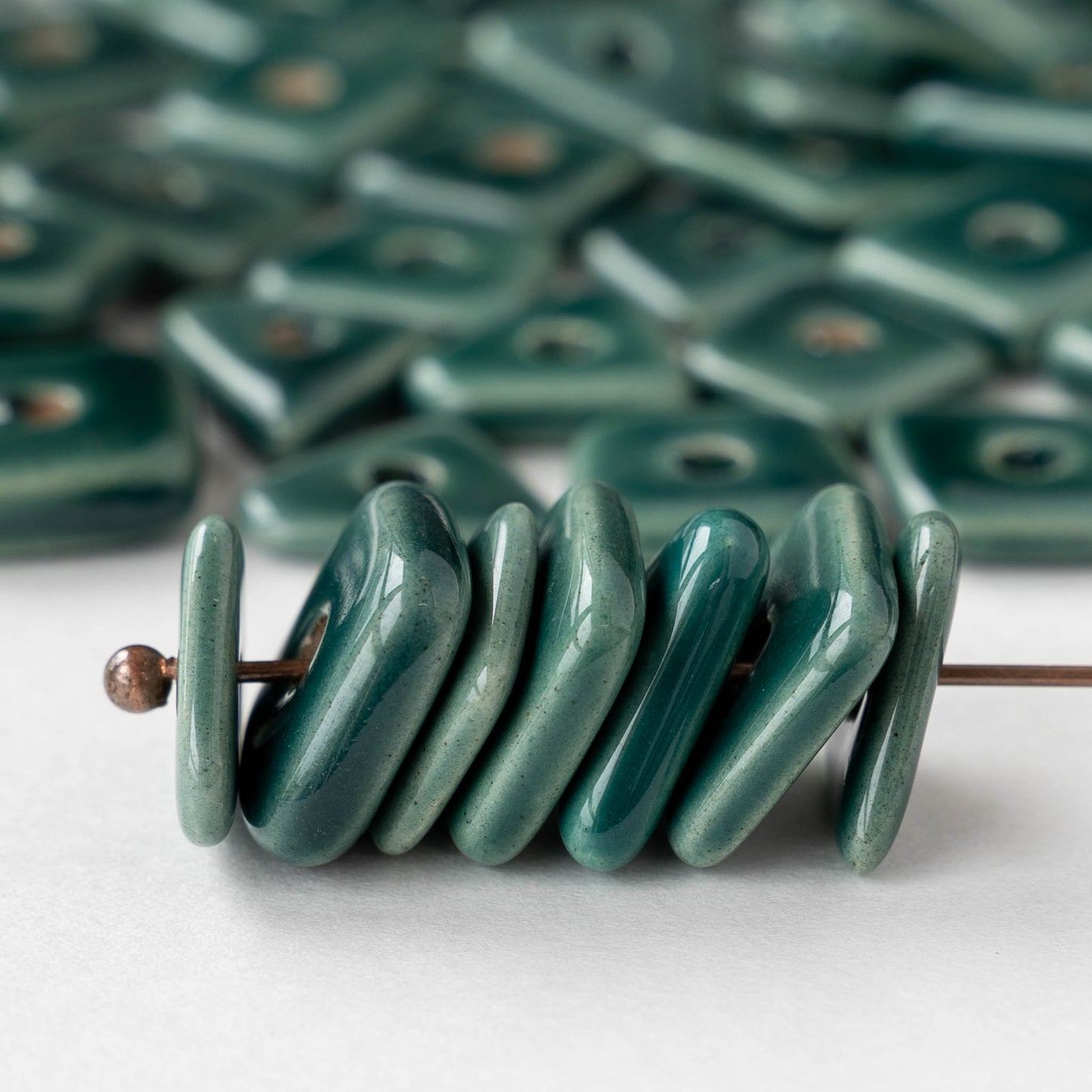 Glazed Ceramic Irregular Chip beads - Teal - 10 or 30 beads
