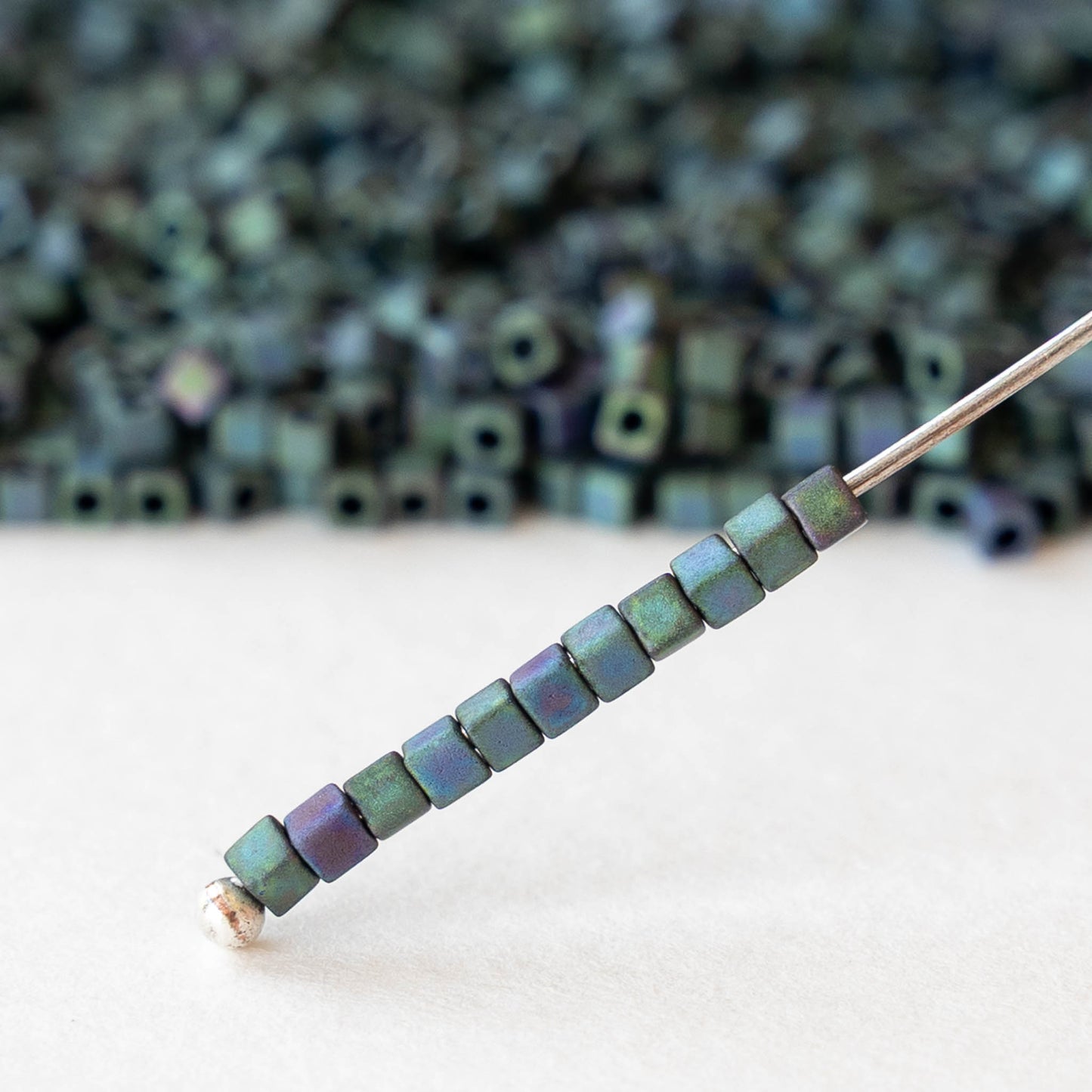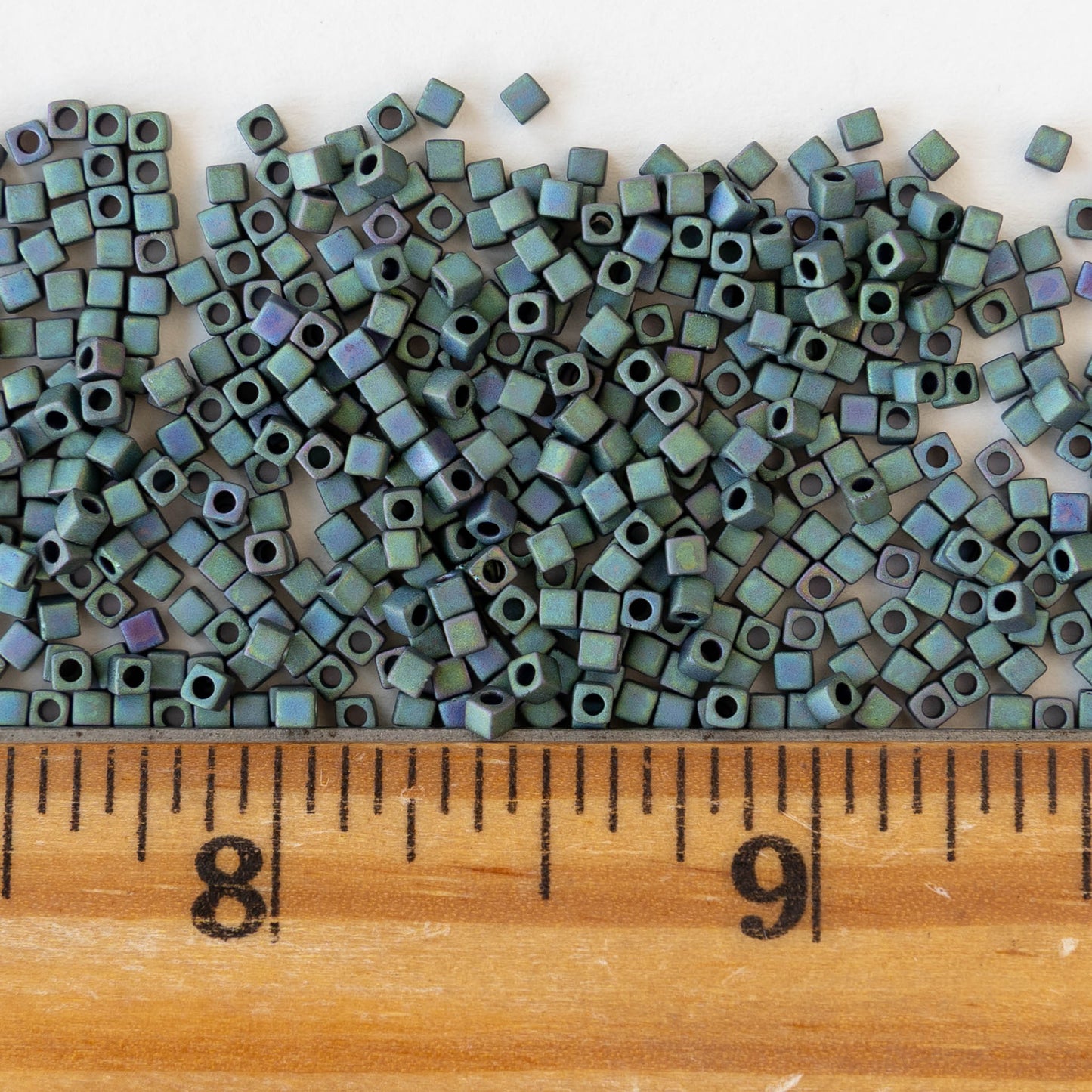 1.8mm Miyuki Cube Beads - Matte Metallic Blue Green Iris - 10 grams