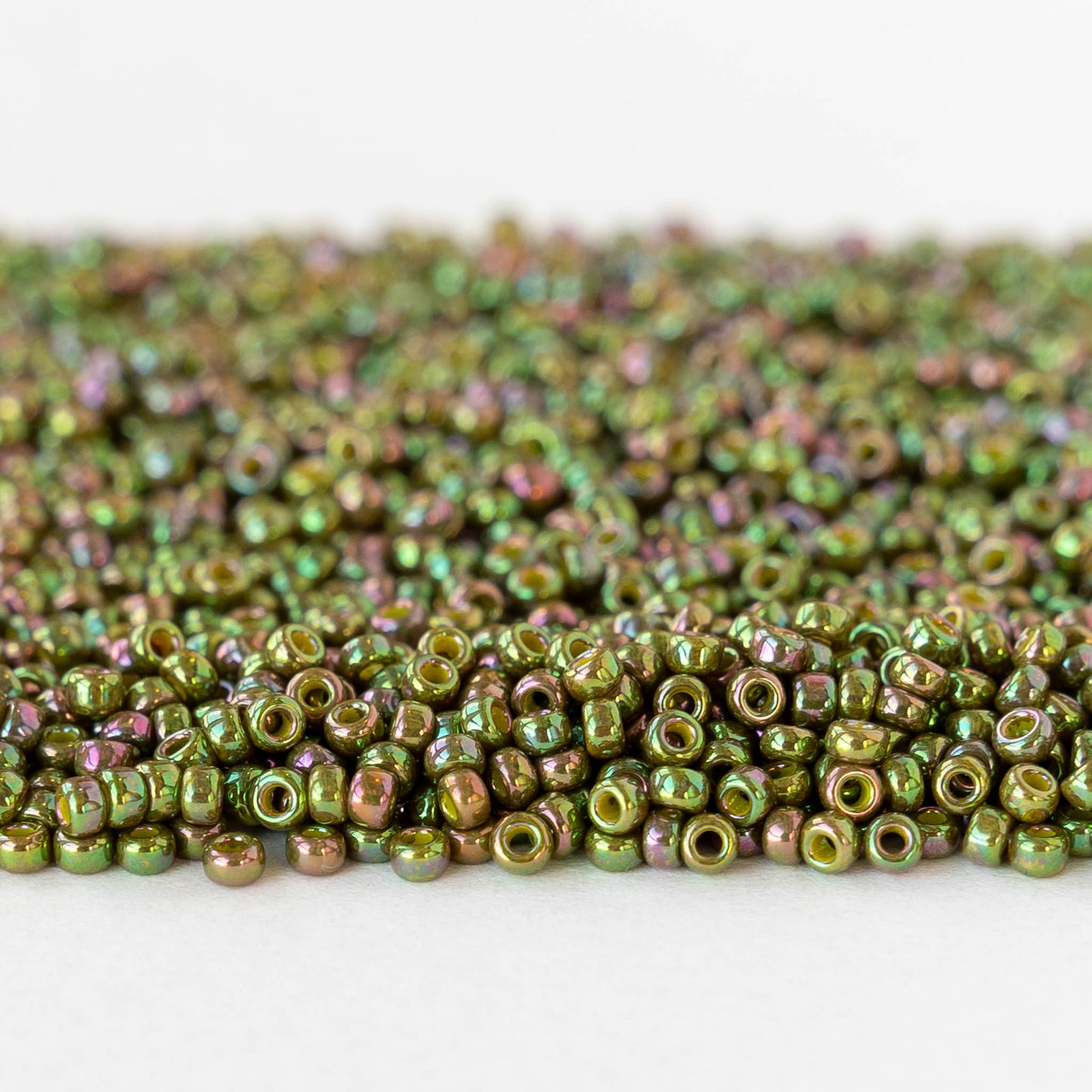 11/0 Glass Seed Beads - Light Green Iris - 10 grams