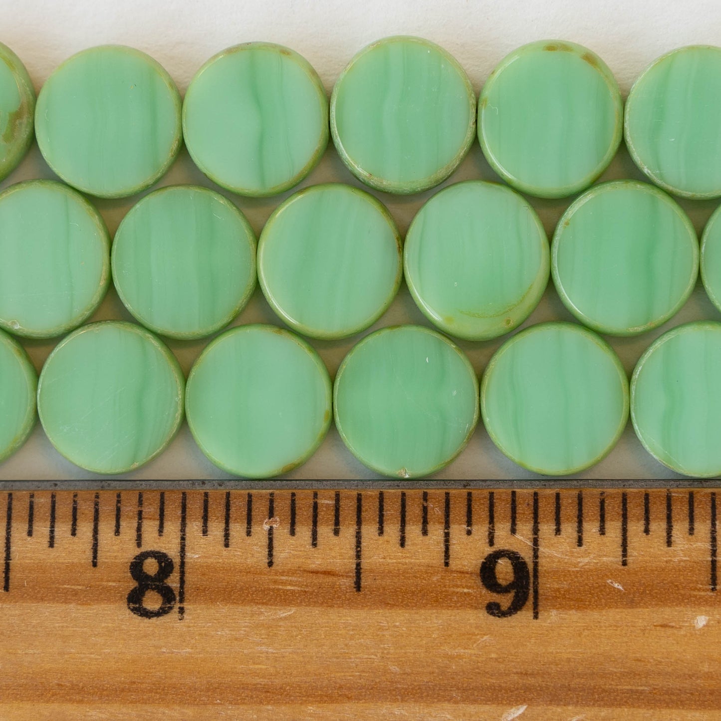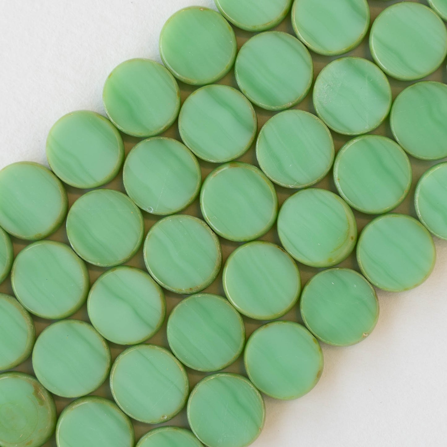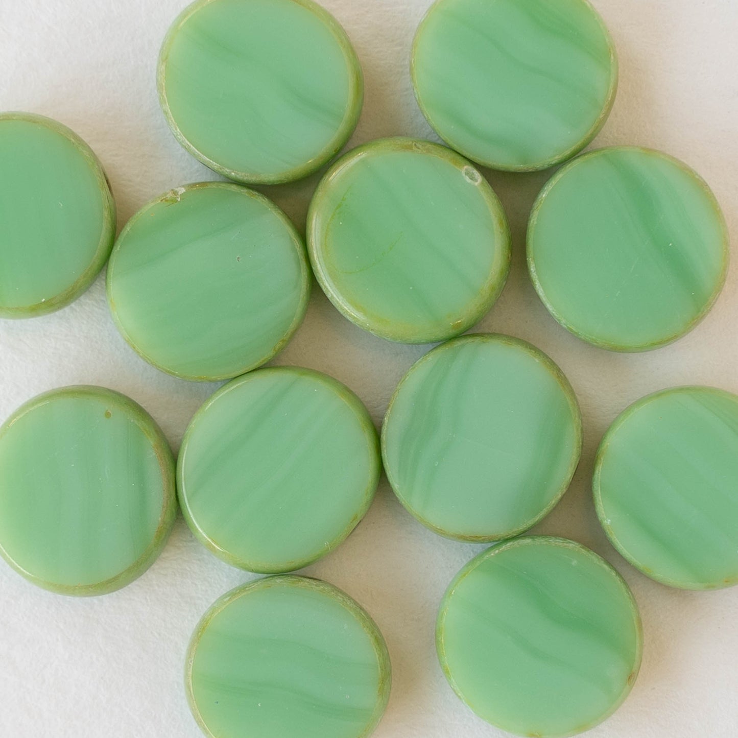 11mm Glass Coin Beads - Opaque Seafoam - 6 or 12 beads