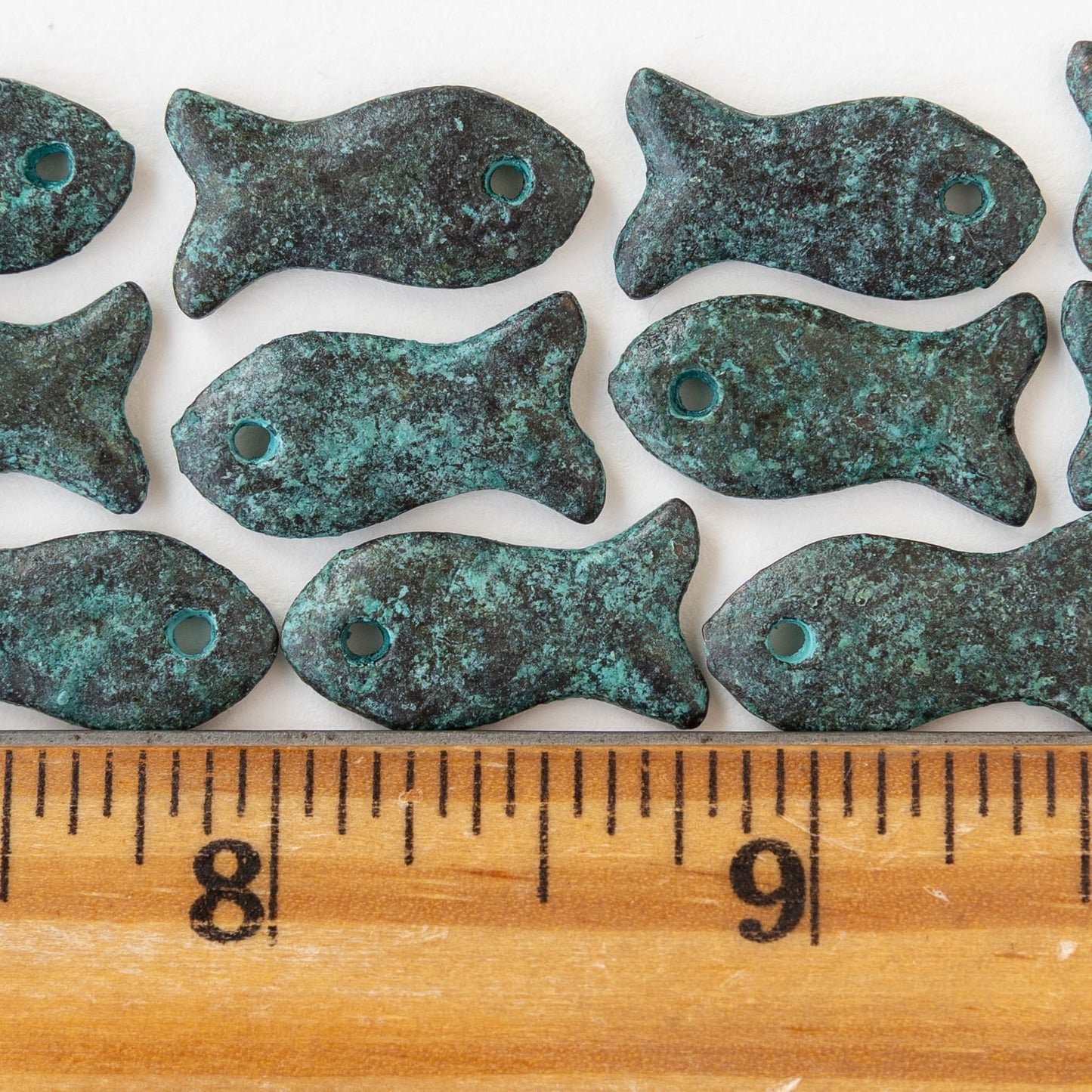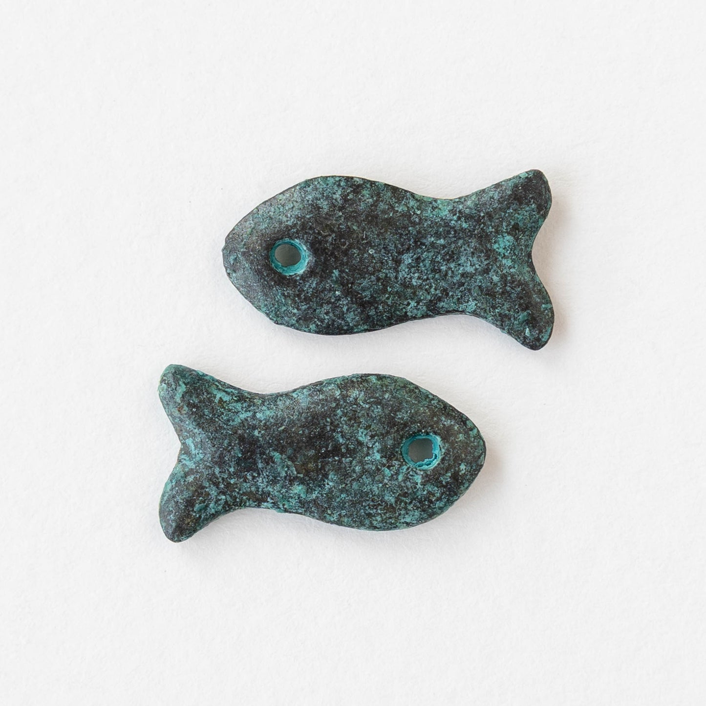 11x20mm Mykonos Metal Fish Pendant - Green Patina - 2 or 6 pendants