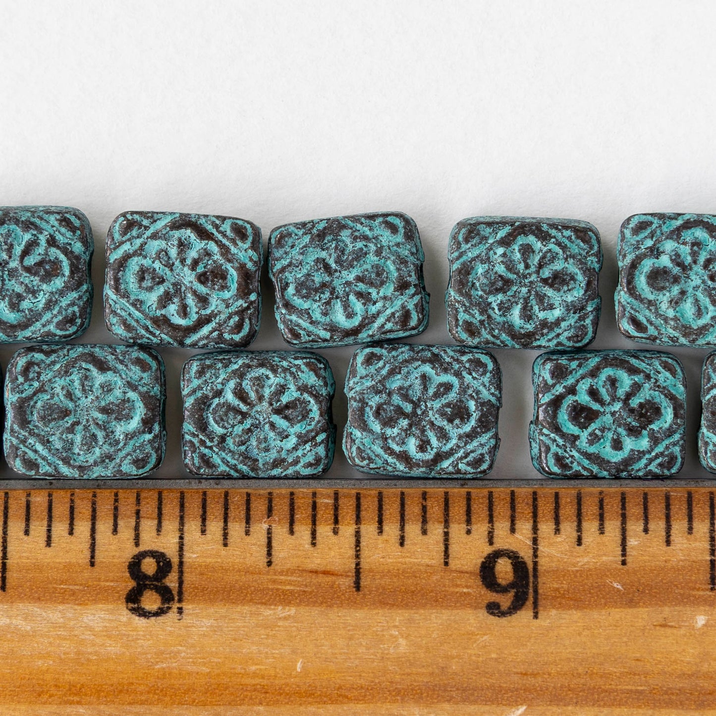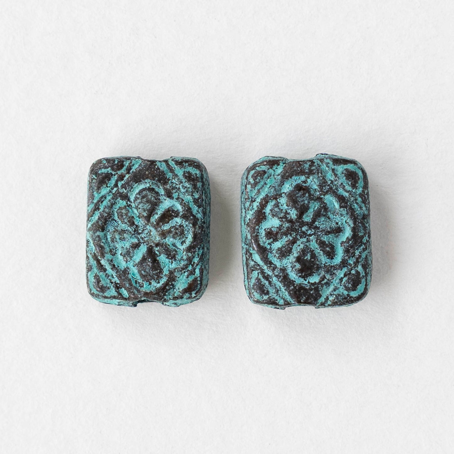 9.5x11mm Metal Floral Rectangle Beads - Copper Patina - 2, 6, or 12 beads