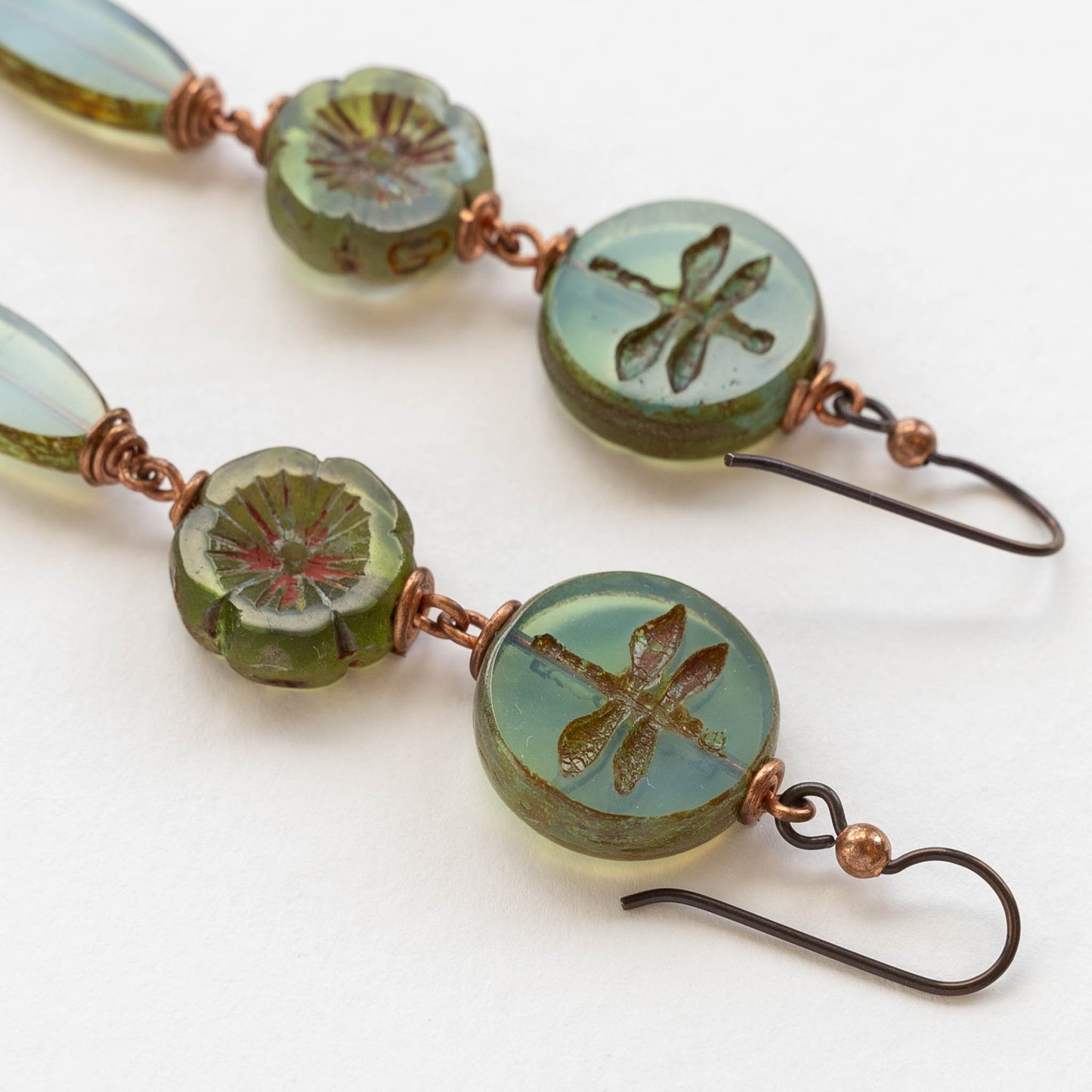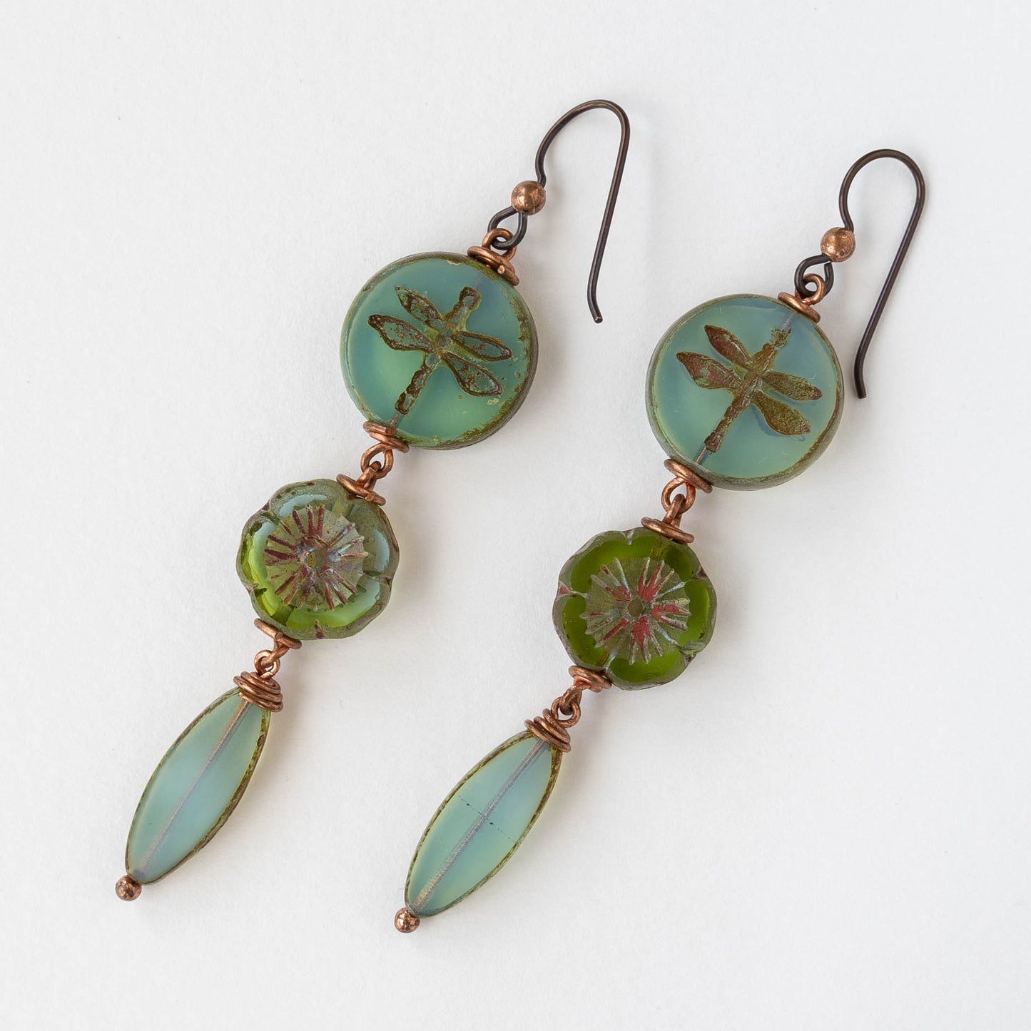 Dragonfly Flower Dangle Earrings - Opaline Seafoam