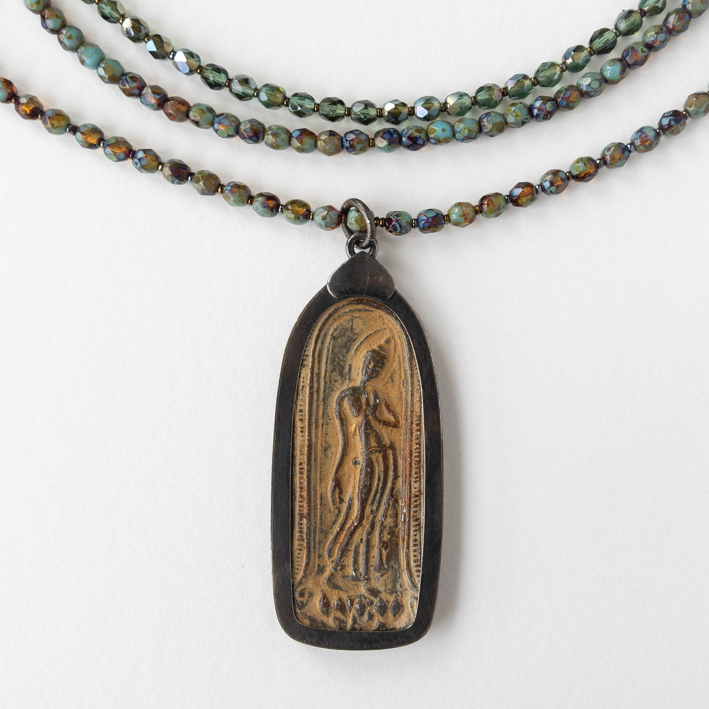 Indulge in the divine elegance of our Three Strand Buddha Necklace. Crafted with a dancing Buddha pendant, this necklace exudes a peaceful energy and adds a touch of spirituality to your style. The three strands symbolize the mind, body, and soul, making it a perfect gift for those seeking balance and harmony.