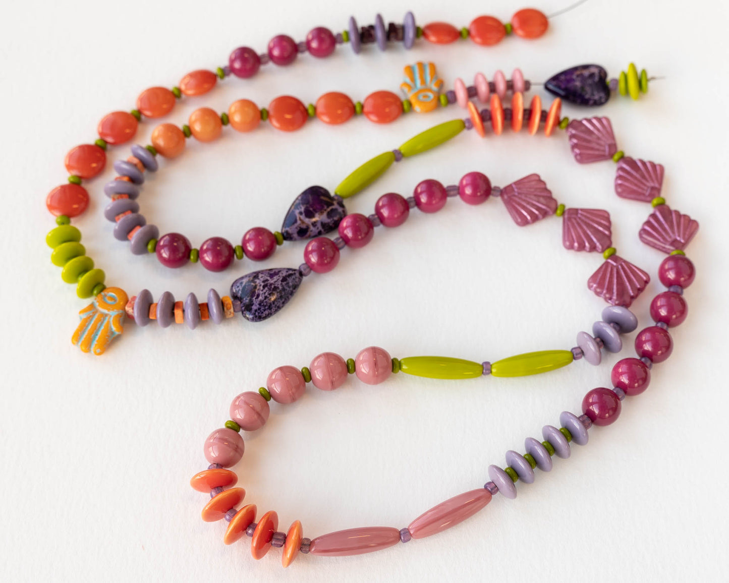 Made with glass beads from Czechia and Impression Jasper stone beads. This versatile necklace can be worn long or doubled.